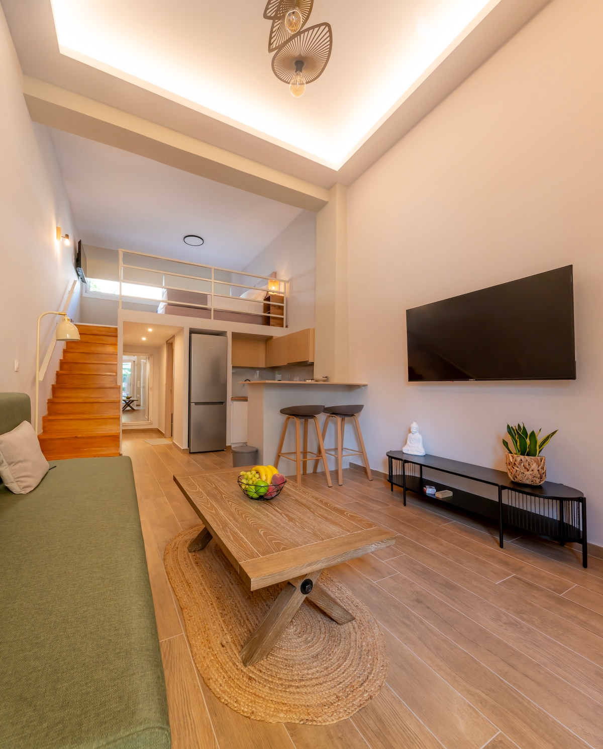 हमारा 40 वर्ग मीटर, एक बेडरूम का अपार्टमेंट ज़ालैंड्री शहर में स्थित है। कम से कम और आरामदेह सजावट के साथ नए तरीके से बनाया गया एथेंस के उपनगरों में एक शानदार ठिकाना बनाता है, जहाँ सब कुछ केंद्र के करीब होता है और ज़रूरत पड़ने पर आराम भी होता है। एक पूरी तरह से सुसज्जित किचन, एयर कंडीशनिंग और स्मार्ट - टीवी आराम से यात्री की माँगों को पूरा करते हैं। इस जगह को खोजने के लिए कई खूबसूरत जगहें हैं। छोटे परिवारों, युगल और एकल यात्रियों के लिए एकदम सही। हवाई अड्डे और पोर्ट्स के बहुत करीब।