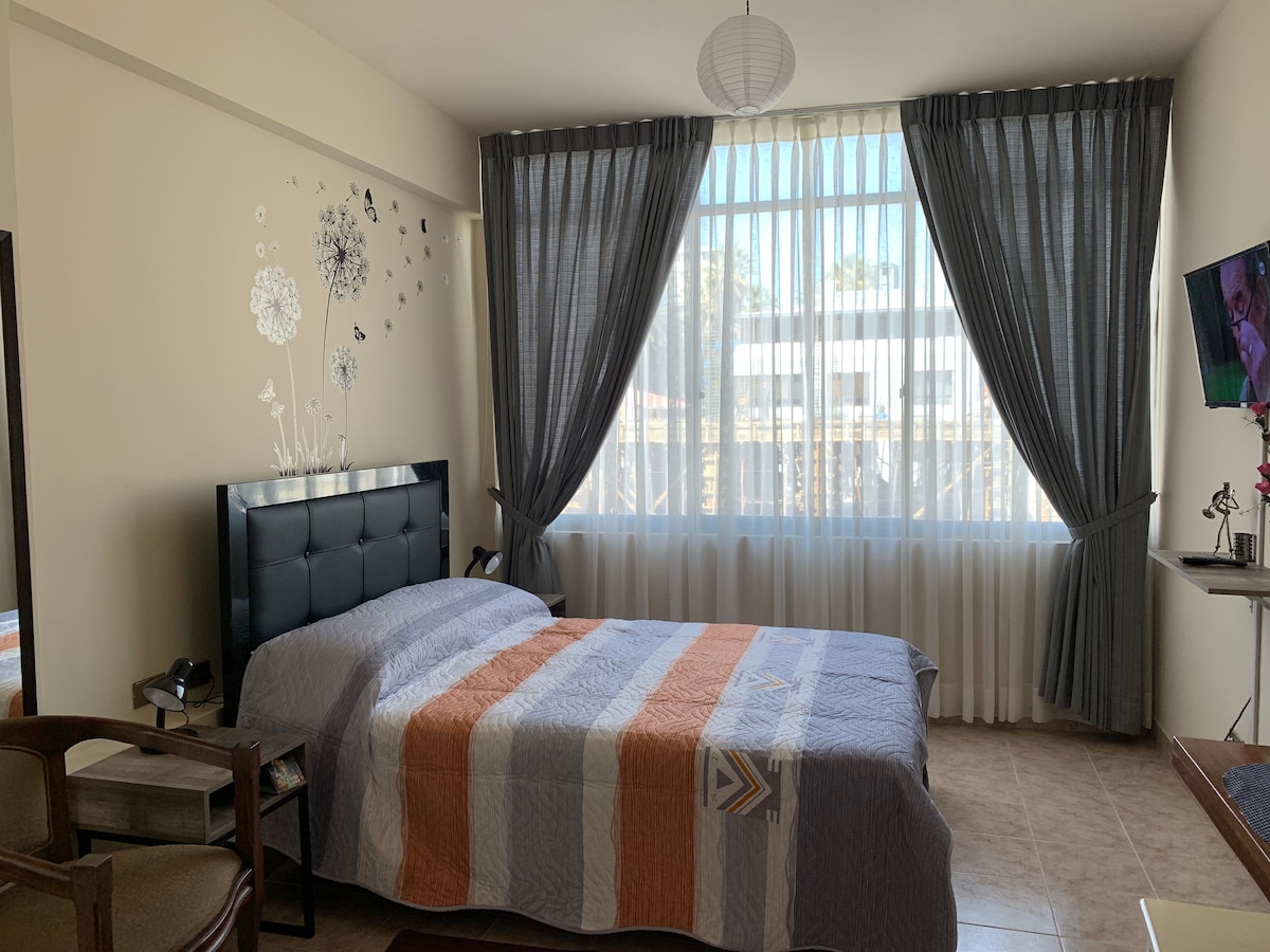 इस शांत और खूबसूरत जगह में आराम करें। इमारत में विशेष स्थान, आपके लिए आदर्श यदि आप अकेले यात्रा कर रहे हैं या व्यवसाय, काम या आराम के साथ। अपार्टमेंट में एक लिफ्ट, पार्किंग स्थल, वाईफाई, नेटफ्लिक्स है। यह 2 लोगों के सुखद प्रवास के लिए आवश्यक सभी चीजों से सुसज्जित और सुसज्जित है। Cochabamba या Quillacollo के केंद्र से 8 मिनट की दूरी पर स्थित है। यह जगह खाना पकाने या धूम्रपान करने के लिए उपयुक्त नहीं है। 5 दिनों से अधिक समय तक ठहरने के लिए सफ़ाई अतिरिक्त शुल्क पर की जाती है।
