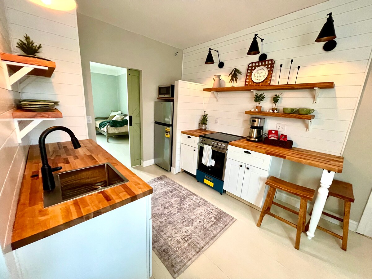 खूबसूरती से सजाया गया गर्म केबिन महसूस करता है। अपने लैपटॉप के काम की जगह के लिए अच्छा डेस्क के साथ विशाल बेडरूम। बाथरूम में वॉशर और ड्रायर है। लिविंग रूम में दूसरे बेड के लिए मोटा - कुशन वाला लेदर फ़्यूटन, माइक्रोवेव/एयर फ़्रायर के साथ काउंटर स्पेस, पेपर प्रोडक्ट और कुएरिग कॉफ़ी मेकर, नया 5’ फ़्रिज, 50" फ़्लैट स्क्रीन टीवी है। आउटडोर हॉट टब का ऐक्सेस। इंटरनेट कमज़ोर था, इसलिए कुछ समीक्षाओं पर असर पड़ा, लेकिन अब यह बहुत तेज़ है। सीडर लेक वाइनरी के पास, बिग जोएल का सफ़ारी, लॉन्ग रो लैवेंडर फ़ार्म और कद्दू गैलोर
