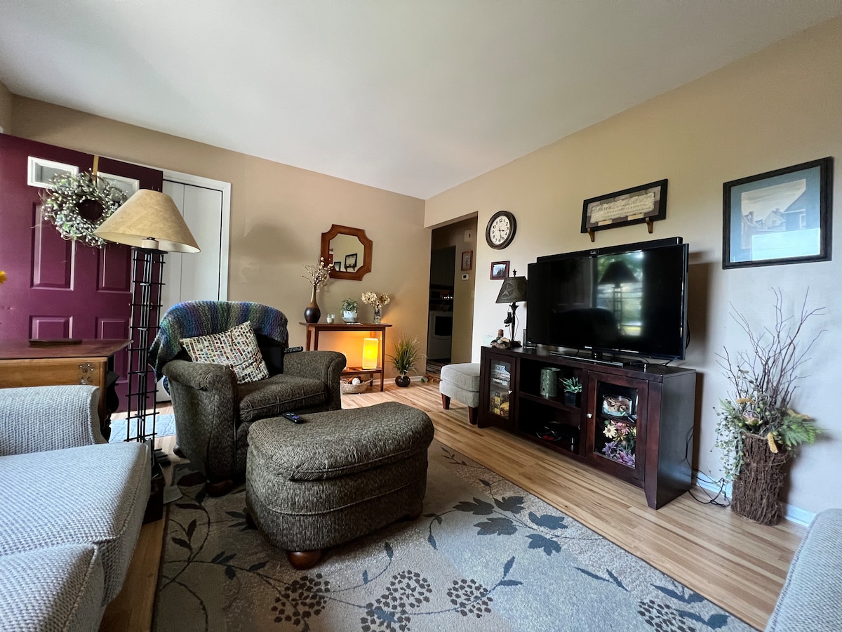 मिशिगन टेक से महज़ 5 मिनट की दूरी पर अच्छा, साफ़ - सुथरा अपार्टमेंट और पोर्टेज लेक का नज़ारा (झील का ऐक्सेस भी!)। गैराज पार्किंग का एक स्टॉल उपलब्ध है, ताकि आप बर्फ़ से निपटने के बिना कार से सीधे अपार्टमेंट तक जा सकें। ड्राइववे जोता गया है। वाईफ़ाई, हीट, क्यूरिग कॉफ़ी सेलेक्शन शामिल हैं। शॉवर के साथ विशाल बाथरूम में वॉशर और ड्रायर हैं। पूरा किचन और इलेक्ट्रिक फ़ायरप्लेस। गैरेज से स्टेयरलिफ़्ट। क्वीन साइज़ बेड के साथ अतिरिक्त पुलआउट काउच (लगभग फ़ुल साइज़) और बच्चों का बेड।