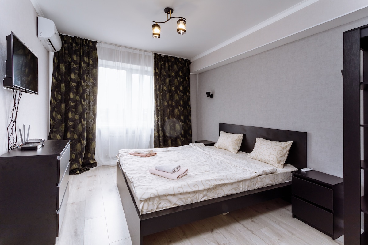 आप चिसिनौ के सबसे अच्छे आस - पड़ोस में ठहरेंगे। कोई उपद्रव और जल्दबाजी नहीं है, और समय लगातार बहता है। आपके लिए - एक नया पुनर्निर्मित अपार्टमेंट, जिसमें एक समृद्ध परंपरा, उज्ज्वल, आरामदायक, एवेन्यू और एक पैदल यात्री सड़क का नज़ारा है। क्लासिक कुदरती लकड़ी का फ़र्नीचर, बहुत तेज़ वाईफ़ाई, स्मार्ट टीवी, एयर कंडीशनिंग। 3 मिनट (200 मीटर) दूर - सेंट्रल पार्क, सबसे अच्छे रेस्तरां, क्लब, दुकानें। हमारे पास वह सब कुछ है जो आपको आरामदायक रहने के लिए चाहिए! हर 7 दिनों में लिनन/तौलिए की सफ़ाई और बदलाव।