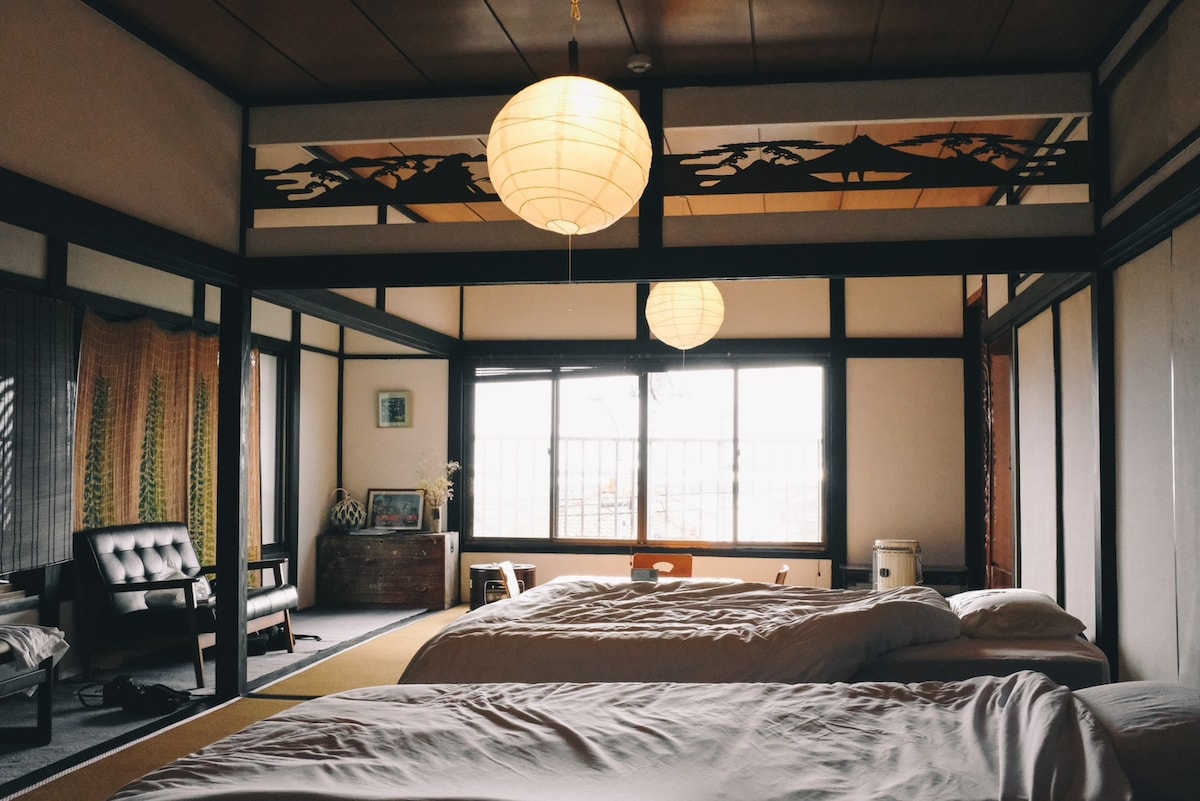 पारंपरिक जापानी कमरे और बगीचे में आराम करें