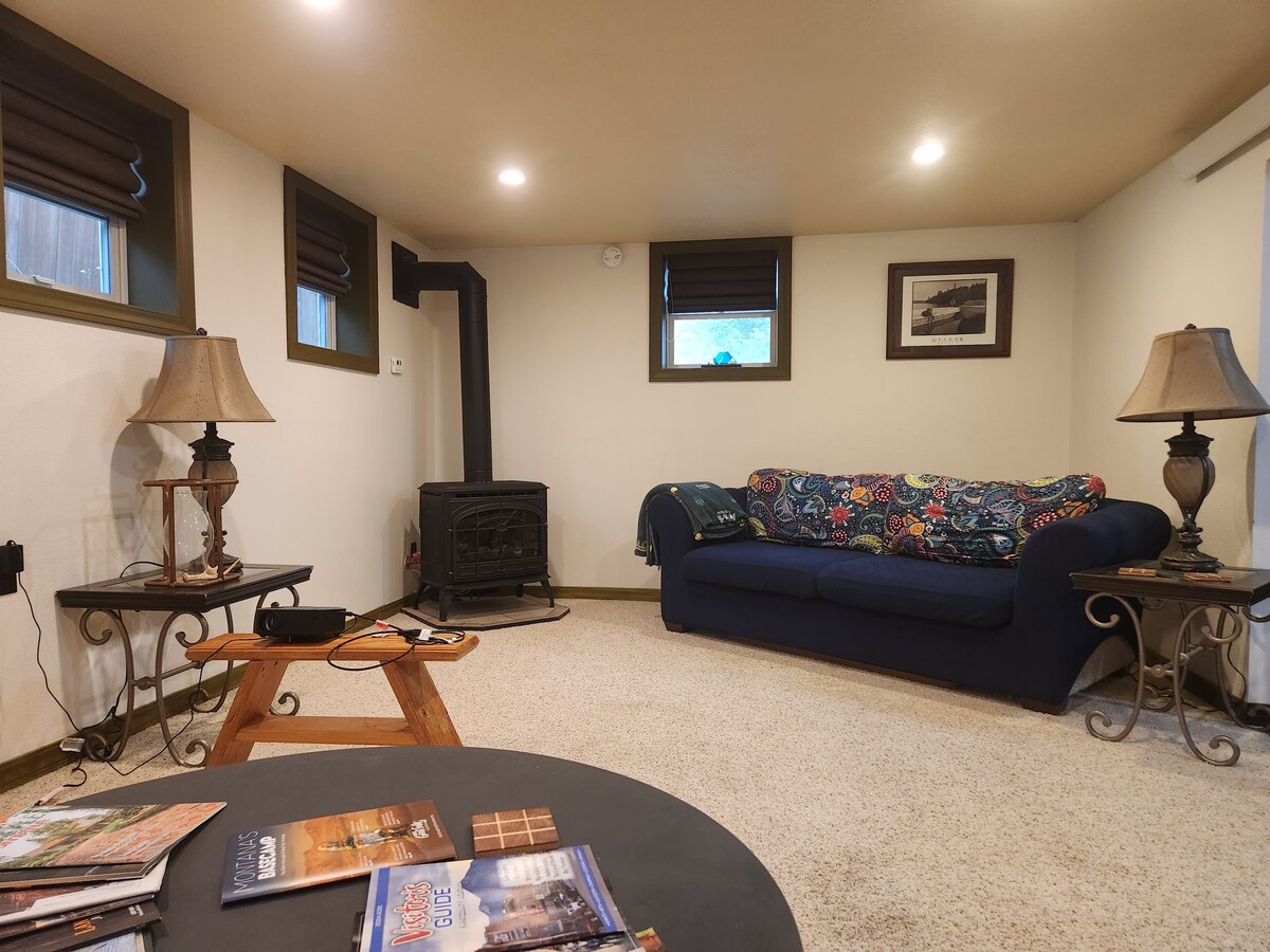 आरामदायक तहखाने - यहाँ काम या खेलने के लिए यह रहने के लिए एकदम सही जगह है! निजी प्रवेश द्वार और की - लेस एंट्री, आपके पास अपनी खुद की जगह होगी - लिविंग रूम, निजी बाथरूम और बेडरूम। इस इकाई के पीछे के आँगन में एक अलग प्रवेश द्वार है और जबकि केवल कुछ ही कदम हैं, यह दिव्यांगों के लिए उपलब्ध नहीं है। यह शांत पड़ोस सुंदर ग्रेट फॉल्स में एक दिन के बाद आराम करने के लिए एक शानदार जगह होगी।