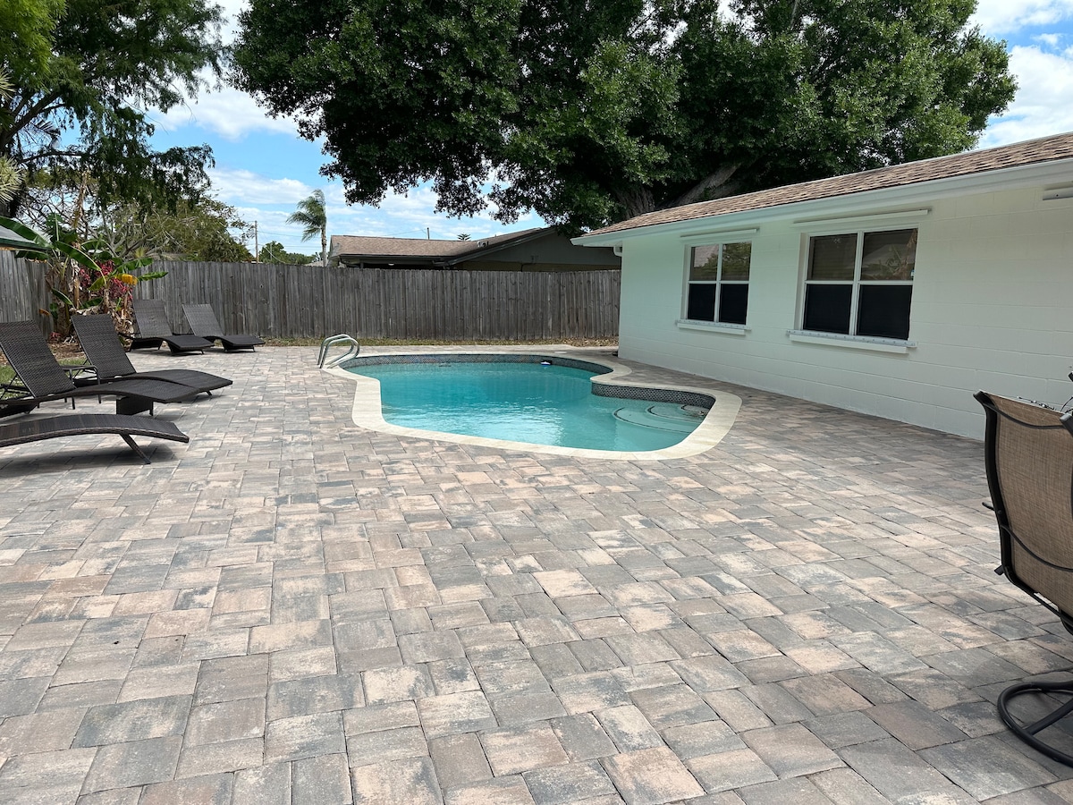 3/2 कोस्टल पूल होम ~ पोर्ट / बीच से 8 मिनट की दूरी पर!