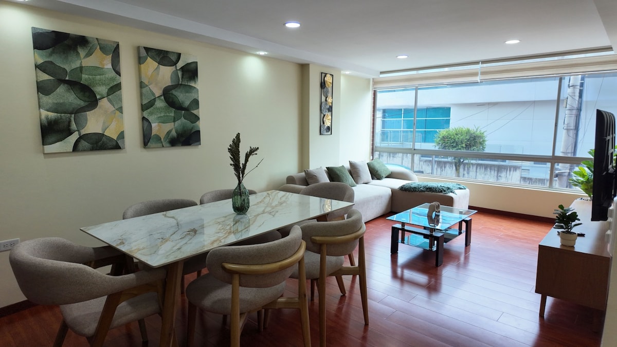 Enjoy a spectacular view of Quito (Cotopaxi, Basilica of the National Vow, El Panecillo) from this spacious and bright apartment in La Carolina. Ideal for families, it offers cozy spaces and proximity to everything: shopping centers, restaurants, parks, and public transportation. Peace of mind is guaranteed with our power generator and Airbnb’s 5-step enhanced cleaning process. Book now you won't regret!