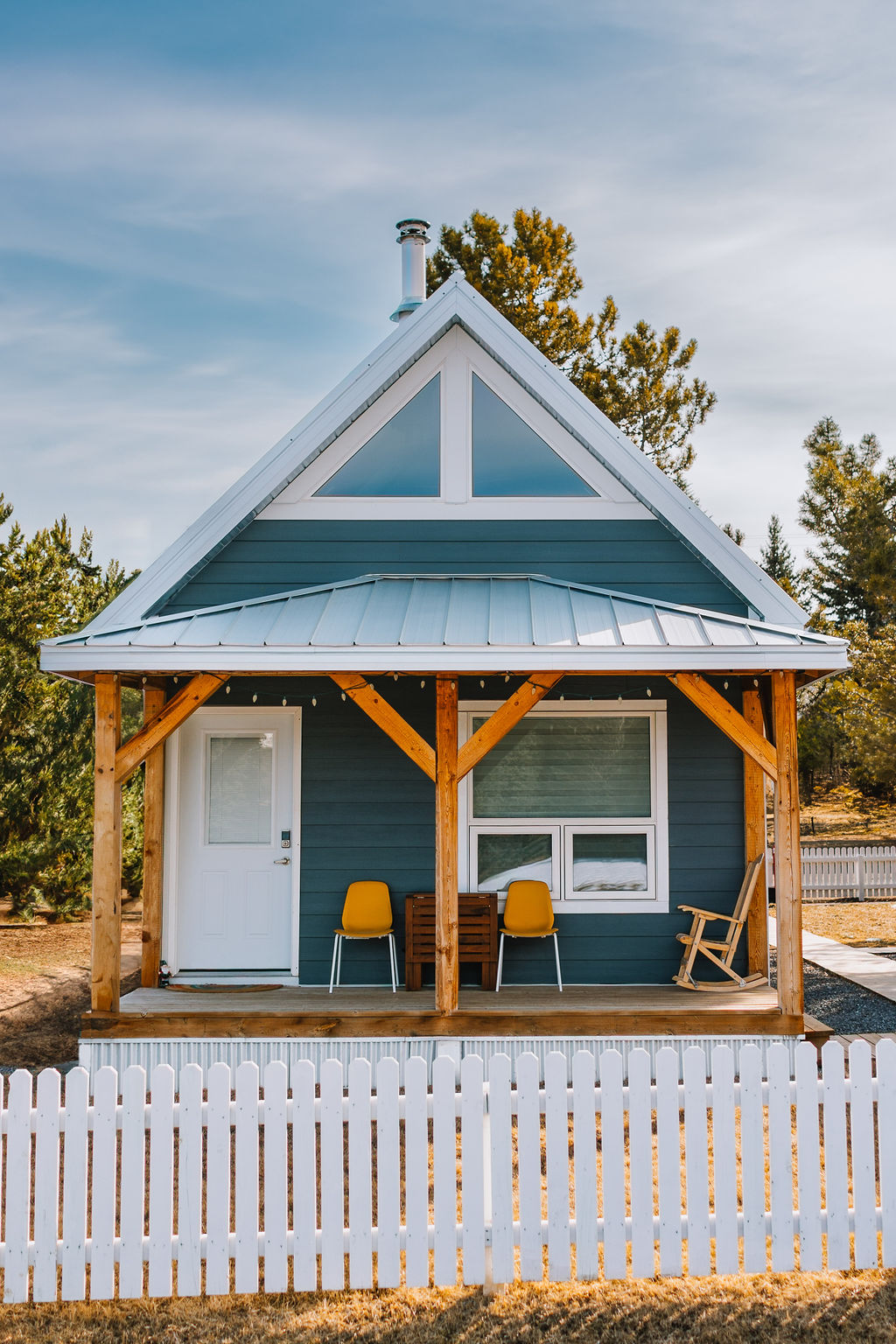 बाहर बैठने की सुविधा देने वाले छोटे घर