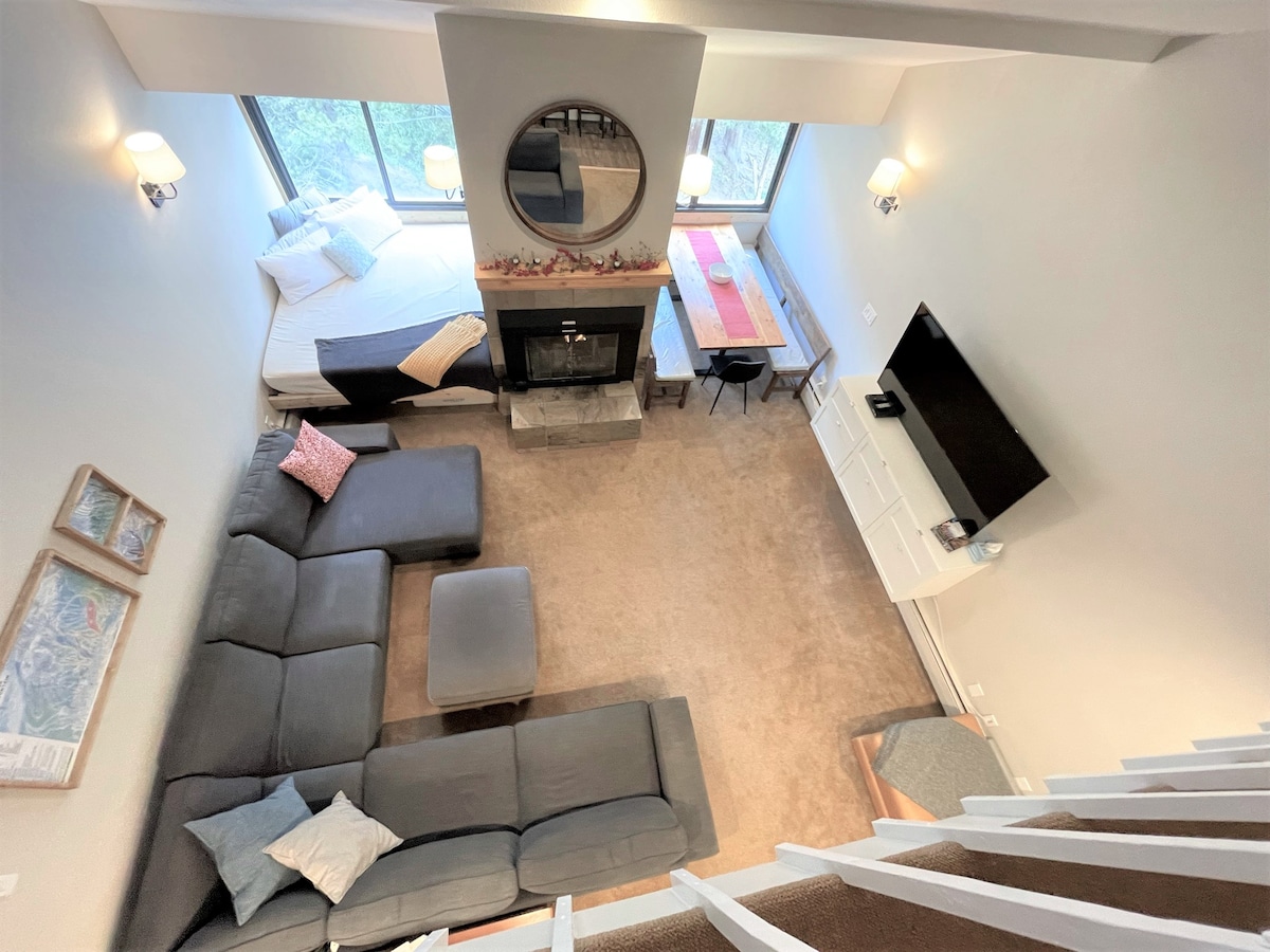 नव पुनर्निर्मित! तांबे पर सबसे अच्छा स्थान। ढलान, बिल्कुल नए अमेरिकी ईगल गोंडोला लिफ्ट के लिए कदम। 2 बाथरूम के साथ बड़ा 550 वर्ग फुट 2 स्तर स्टूडियो। शहर में कई 1 बेडरूम से भी बड़ा। दोपहर के भोजन के लिए स्की करें या एक सांस लें। मचान में राजा बिस्तर। स्लोपसाइड स्की लॉकर, आपको कभी भी गियर को ऊपर और सीढ़ियों से ऊपर खींचने की ज़रूरत नहीं है। वास्तव में स्की इन/आउट! ऊपर दी गई तस्वीरें सभी यूनिट से हैं। लिविंग रूम से कॉपर के प्रसिद्ध 1/2 पाइप का सही दृश्य। अगर आप ऊब जाते हैं, तो आप 72" टीवी देख सकते हैं। 1 मुफ्त पार्किंग स्थल