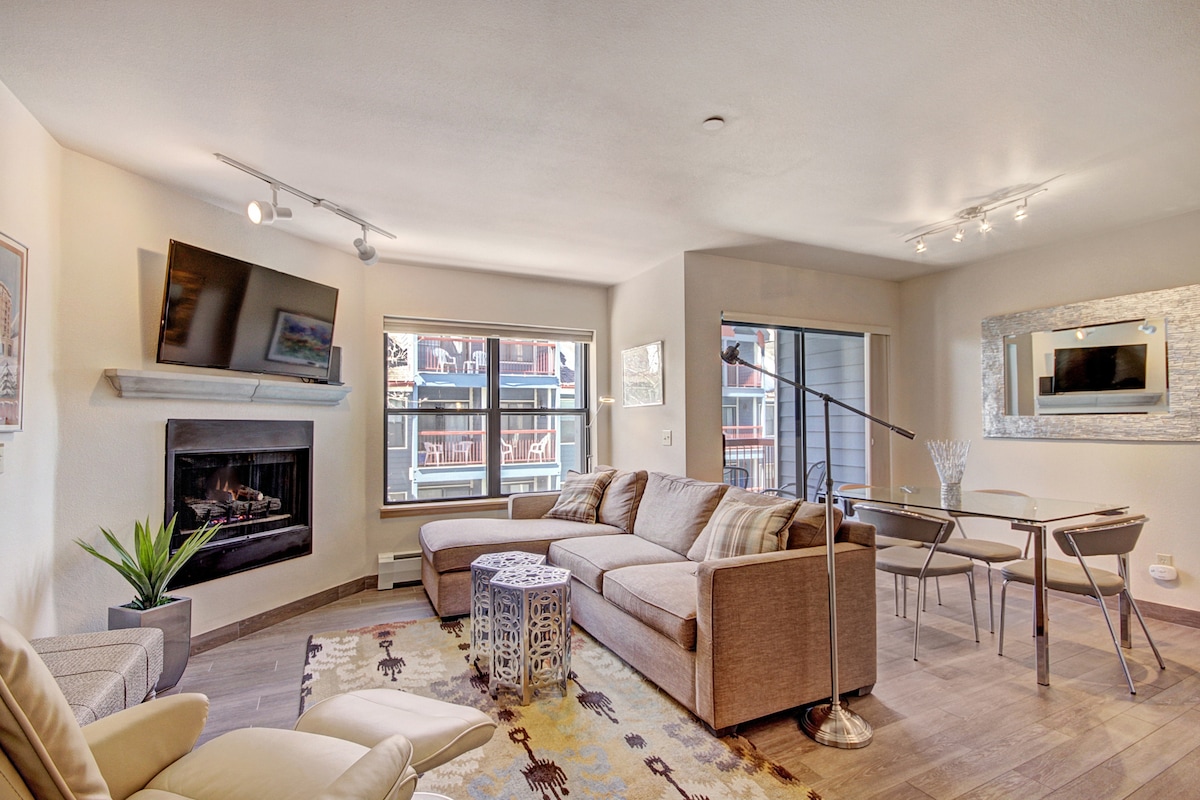 Bring the whole family and enjoy this fully renovated, stylish and spacious condo located at the historic Village at Breckenridge – the best located condo complex in Breck. The Village is nestled at the foot of Quicksilver chair lift and steps from Main Street making this the best of both worlds! Entering the unit, you’ll be greeted by a warm, yet utilitarian entry area complete with ample ski racks and a built-in boot and shoe rack - a convenient addition for longer trips.