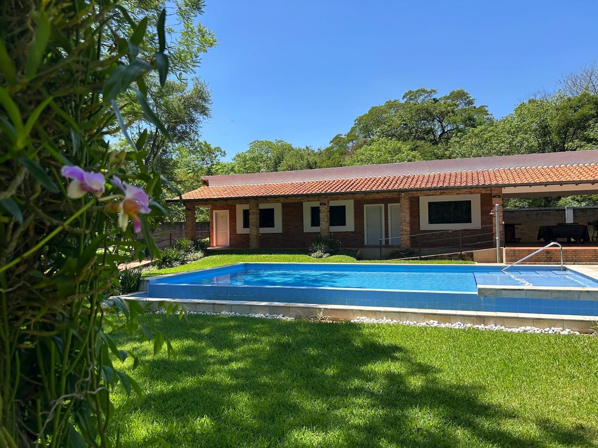 Disfruta de la piscina con cascada, relax en el hidromasaje, las vistas del atardecer/amanecer en la terraza o el mirador. Churrasquera y horno tatakuá, para preparar carnes/pescados/pizza/comidas típicas y disfrutar en la mesa de madera/bajo los árboles. Aire acondicionado en los 2 dormitorios. El tanque de 1000 litros garantiza la provisión de agua. Ayuda para excursiones. El lago Ypacaraí está a pocos km. Amplio estacionamiento privado.
