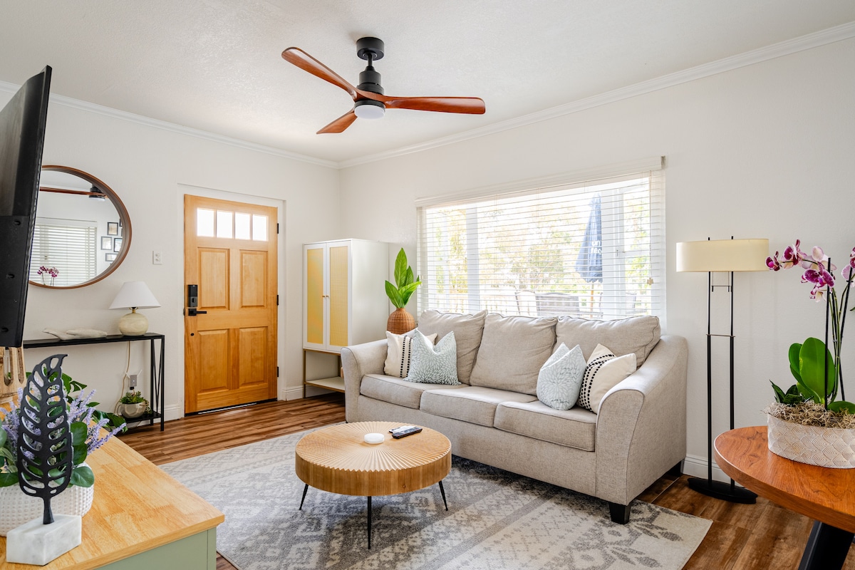 डाउनटाउन सैन डिएगो के किनारे एक ऐतिहासिक जिले में स्थित आकर्षक, पूरी तरह से पुनर्निर्मित कॉटेज। यह एक सुरक्षित, शांत ऐतिहासिक पड़ोस है। कोई पर्यटन क्षेत्र नहीं। ज़्यादातर मेहमान ड्राइव करते हैं या राइड शेयर करते हैं। आपके लिए एक ऑफ़ - स्ट्रीट पार्किंग की जगह है। तत्काल कुछ ब्लॉक में कोई कॉफ़ी शॉप या रेस्तरां नहीं है।