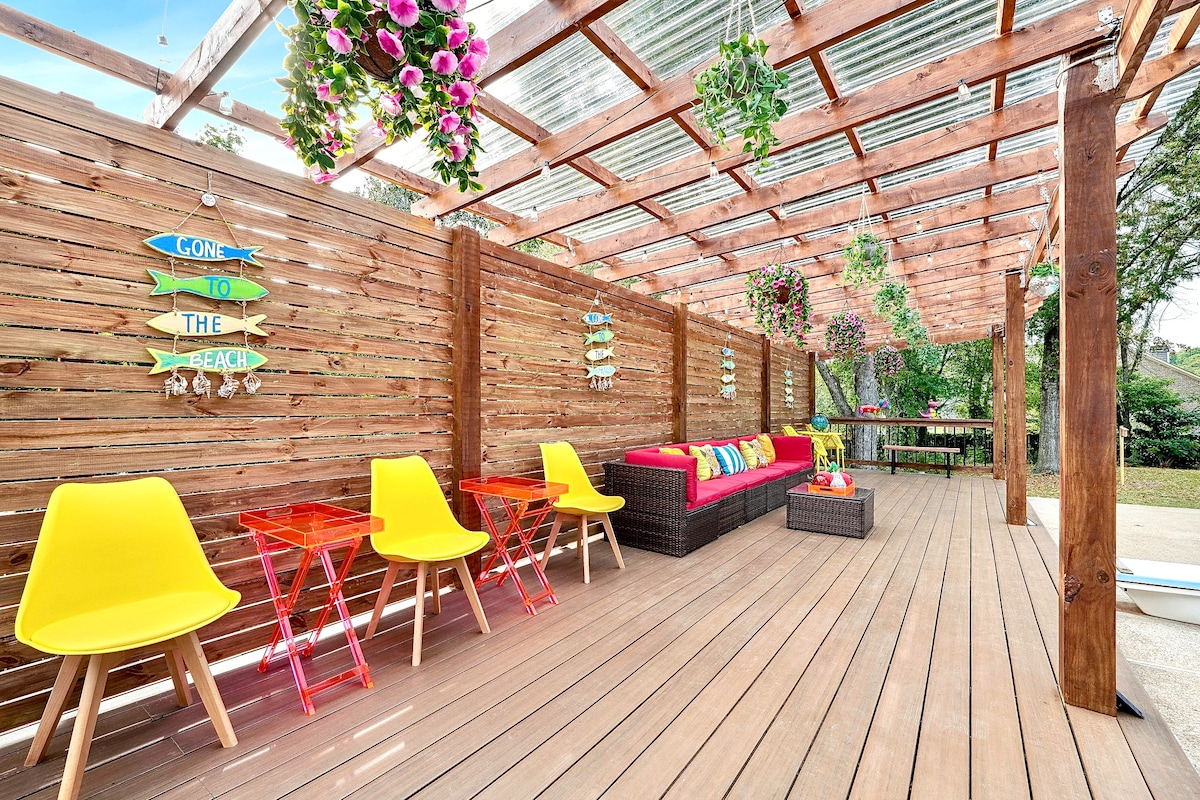 निजी हॉट टब में आराम करें, फ़ायर पिट के इर्द-गिर्द जमा हों और शामिल गोल्फ़ कार्ट पर शहर के बीचोंबीच घूमें—ये सभी कोविंगटन स्क्वेयर से सिर्फ़ 0.9 मील की दूरी पर हैं। 3 बेडरूम, 2 बाथरूम, (6 लोग) तेज़ वाईफ़ाई और स्मार्ट टीवी पूरा किचन और वॉशर-ड्रायर 150 से भी ज़्यादा फ़िल्मों और टीवी शो की शूटिंग वाली लोकेशन, दुकानों और डाइनिंग की जगहों के आसान ऐक्सेस का मज़ा लें आज ही अपनी बुकिंग करें! हम आपको कोविंगटन, जॉर्जिया के बीचों - बीच विलासिता और आराम का अनुभव करने के लिए आमंत्रित करते हैं। जैसा कि यहाँ दिखाया गया है : The Daily Lot & Kids Take Charlotte सोशल: #covingtonhouse
