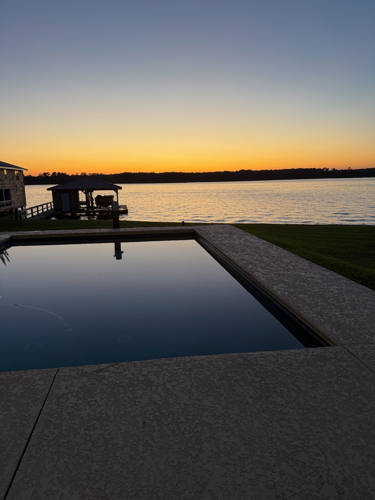 Southern Comfort & Charm on Lake Blackshear with a large walk out porch and gorgeous view, outdoor seating with swings, rockers and large couches. Enjoy a book, fire pit or out door TV for a ballgame with surround sound outside and inside! Perfect weekend getaway, great for work & traveling. Winter rentals available to escape the cold. Great for small family gatherings, girls weekends, or couples. Book a weekend, week or a month. Pets considered, but MUST be approved with $100 p/pet.