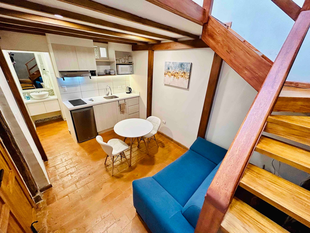 ऐतिहासिक शहर क्वेंका के बीचों - बीच ठहरने के अनुभव को जीएँ। यह आधुनिक अटारी घर शहर के औपनिवेशिक आकर्षण को पूरी तरह से सुसज्जित जगह के आराम के साथ जोड़ता है। इसमें दो विशाल कमरे हैं, एक बहुत ही आरामदायक सोफ़ा बेड और दो छतें हैं जो धूप का आनंद लेने, बाहर नाश्ता करने या दिन के अंत में आराम करने के लिए बिल्कुल सही हैं। Parque Calderón से 5 मिनट से भी कम दूरी पर और हवाई अड्डे से 10 मिनट की दूरी पर स्थित, आप मुख्य आकर्षणों, कैफ़े और रेस्तरां के करीब होंगे।