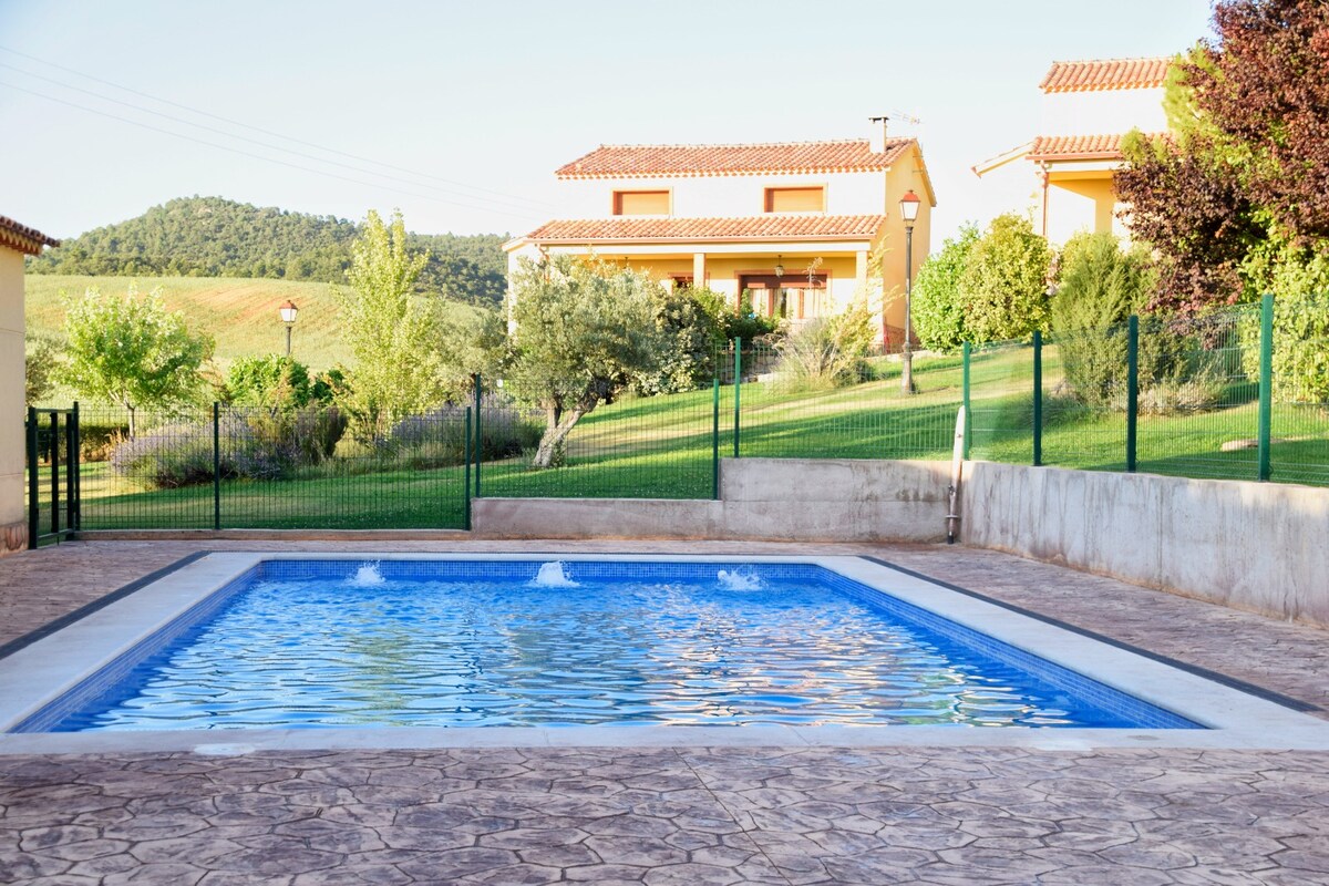 एना का कोना (कासा रूरल) यह घर मन की शांति देता है: पूरे परिवार के साथ आराम करें! एक शानदार वातावरण में पूल, बारबेक्यू, बगीचे, बरामदे और आराम करने और प्रकृति का आनंद लेने के लिए दृश्यों के साथ यह पूरी तरह से पुनर्निर्मित कॉटेज है। यह एक पूरा घर है जो मैड्रिड से 90 किमी दूर दो परिवारों को समायोजित कर सकता है।