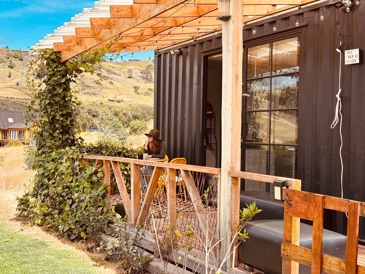 Container con vista al embalse, Fogata y terraza