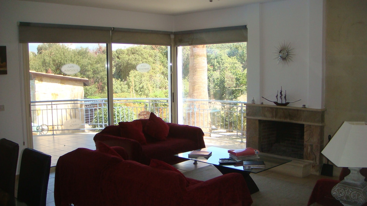इस शांत जगह की खोज करें जहां भोग शांति से मिलता है। इस एस्टेट में इनडोर - आउटडोर लिविंग स्पेस, विशाल छतों, एक BBQ के साथ एक कवर किया हुआ आँगन डाइनिंग एरिया, एक बड़ा पूल और एक विशाल भूमध्यसागरीय बगीचा है। विला में बिलियर्ड्स और टेबल टेनिस भी है। अंत में ठहरने की एक और आलीशान और मज़ेदार कोठी के लिए भुगतान करके जकूज़ी और सॉना दिया जाता है। विला में पेंटिंग की एक प्रदर्शनी है। अगर आप कोई भी पेंटिंग खरीदने में रुचि रखते हैं, तो आप मेज़बानों से संपर्क कर सकते हैं।