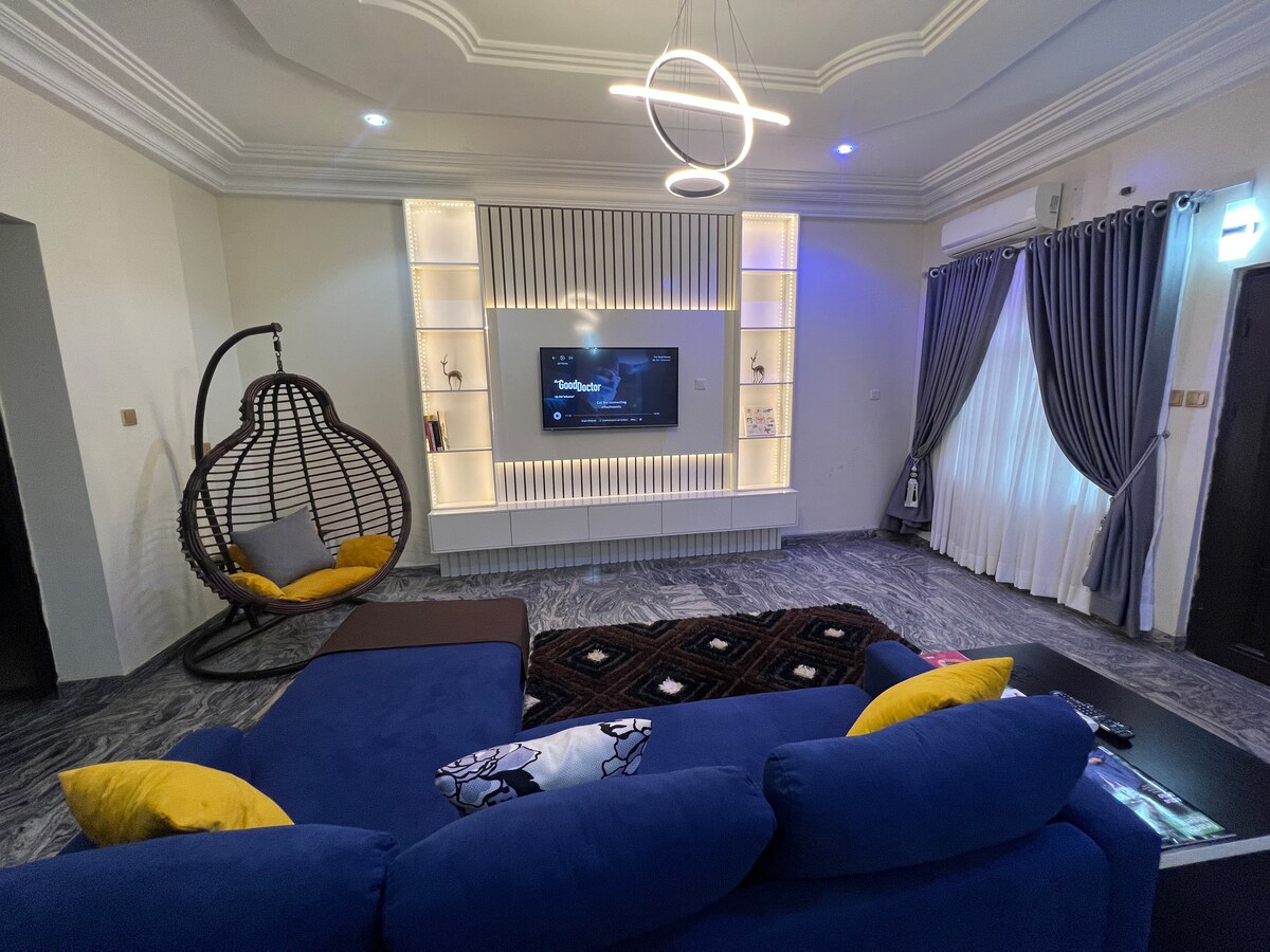 वापस लाएँ और इस शांत, स्टाइलिश जगह में आराम करें। कैटम्पे में स्थित, बैकअप सोलर इन्वर्टर सिस्टम के साथ, आपको लगातार बिजली की आपूर्ति की गारंटी दी जाती है। यह नेक्स्ट कैश एंड कैरी के लिए लगभग 7 मिनट की ड्राइव, Wuse के लिए 17 मिनट, सेंट्रल एरिया के लिए 16 मिनट और Nnamdi Azikiwe अंतर्राष्ट्रीय हवाई अड्डे के लिए लगभग 40 मिनट की ड्राइव है।