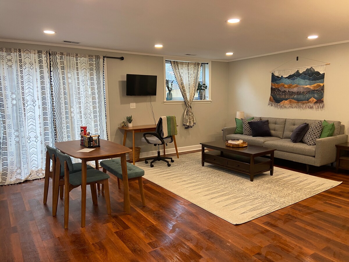 NO CLEANING FEE - Although we don't charge a cleaning fee, our cleaners work very hard to provide a clean place for our guests. THIS IS NOT AN ENTIRE HOUSE. This is a terrace-level guest SUITE in a home in a nice neighborhood with many high end homes. Very safe and quiet location with no thru traffic. The guest suite is private to you with your own private entrance. Access does not include the rest of the house. FREE PARKING on your own reserved spot! NO PARTY policy enforced! (read below)