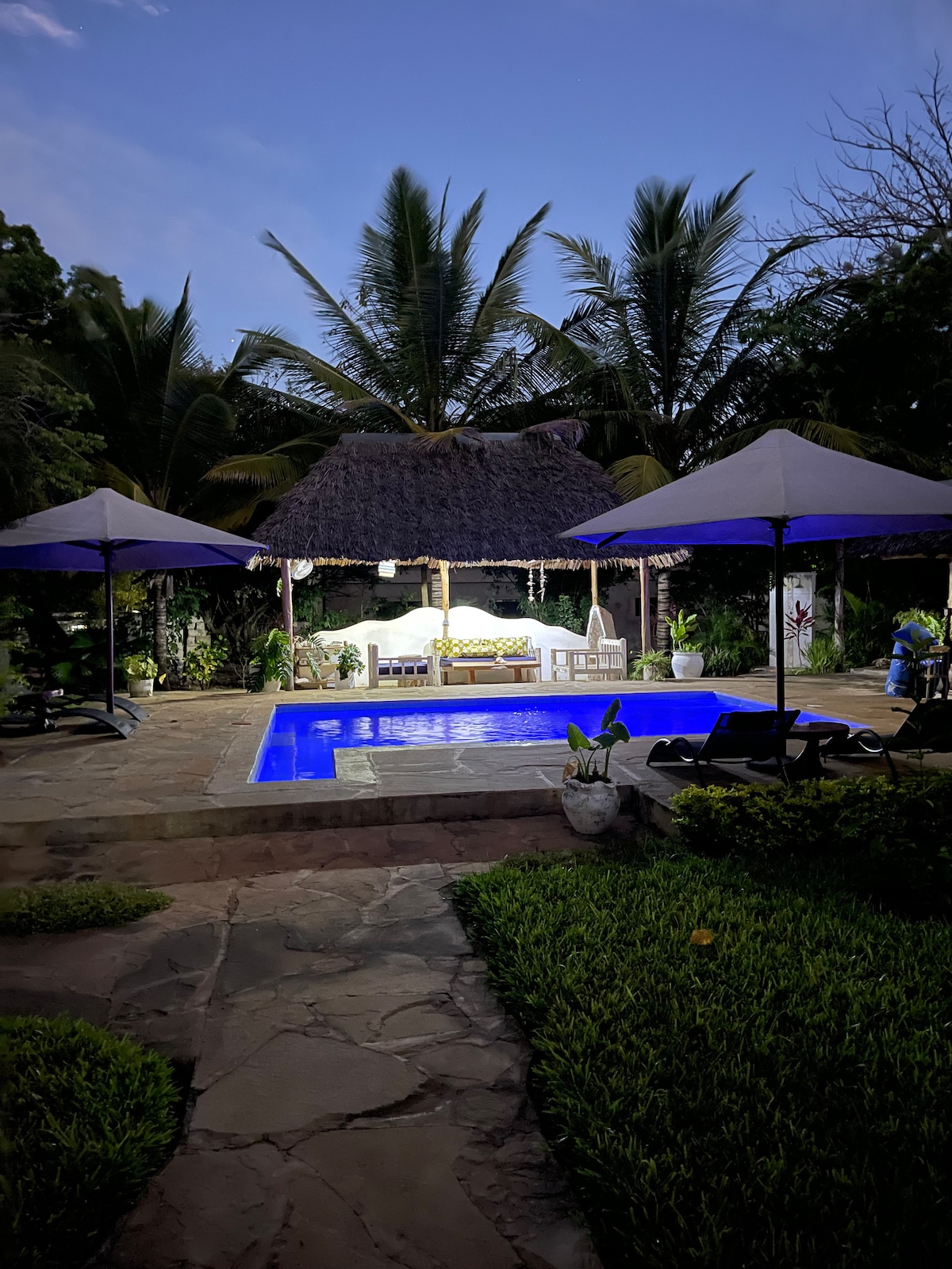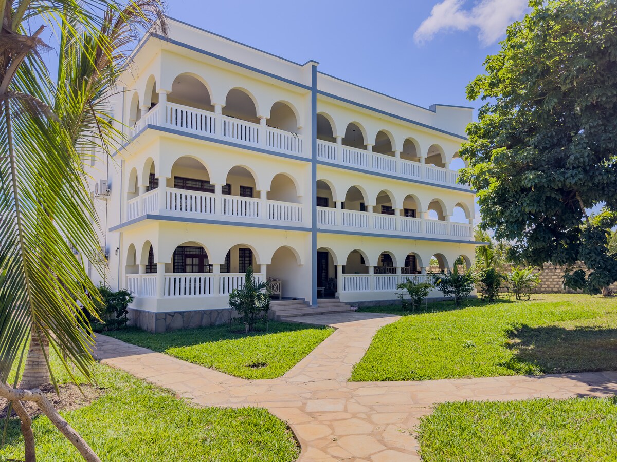 Bora bella is a cool place for total relax in a quite private villa with welcoming swahili people in the Neighbourhood. The house has 4 spacious rooms all ensuite, a spacious 2 living room and 1 modern kitchen. The compound is nice for relax or even a barbeque. we also have a 2 bedroom house which can be used for guest staff.