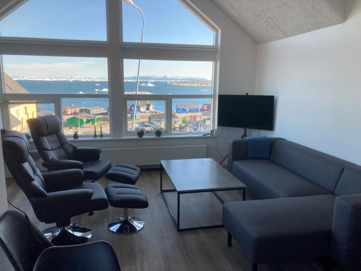 प्यारा 2 - कमरा वाला अपार्टमेंट। केंद्र में स्थित, स्थानीय लोगों और असली ग्रीनलैंडिक संस्कृति के करीब। आप स्लेड कुत्तों के साथ - साथ रहेंगे, बर्फ के दर्पण जैसी समुद्र की सतहों का एक दृश्य, जिसमें सबसे खूबसूरत सफ़ेद आइसबर्ग हैं, साथ ही बर्फ़ीले पहाड़ों तक भी जाएँगे। - बीच से 5 मिनट की पैदल दूरी पर। - आइस फ़ॉर्ड्स सेंटर से 10 मिनट की दूरी पर - यूनेस्को की विश्व धरोहर से 12 मिनट की दूरी पर अपार्टमेंट में: जानकारी फ़ोल्डर कपड़े/तौलिए/बिस्तर की चादरें रसोई उपकरण टीवी/मुफ़्त वाई - फ़ाई धोने/सुखाने की मशीन