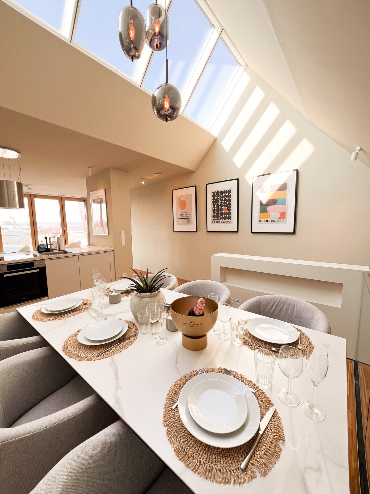ग्रामीण इलाकों में छत वाला स्टाइलिश अपार्टमेंट