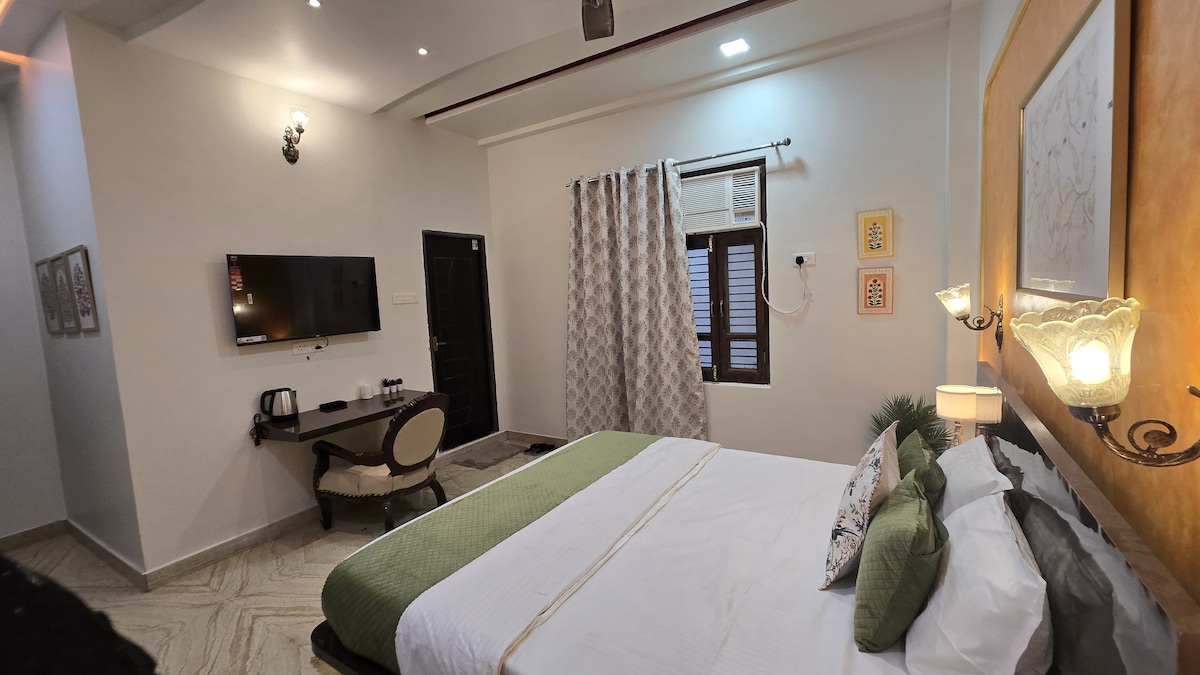 एक जीवित कैनवास में कदम रखें जहाँ बांस का फ़र्नीचर और जीवंत हाथ से पेंट की गई भित्ति चित्र कला और रोमांच के लिए दृश्य सेट करते हैं। हर कोने में रंगीन मोज़ेक, चंचल डिज़ाइन स्पर्श और अनोखी सजावट होती है, जो आँखों को पकड़ती है। मंदिर, घाट और शहर का सबसे स्वादिष्ट भोजन? बस 10 मिनट की दूरी पर। यह सिर्फ़ ठहरने की जगह नहीं है - यह एक संवेदी यात्रा है, जो सपने देखने वालों के लिए तैयार की गई है, जो एक भावुक, दुर्लभ पलायन की लालसा रखते हैं - शहर के बीचों - बीच आपका शांतिपूर्ण, रचनात्मक विश्राम!