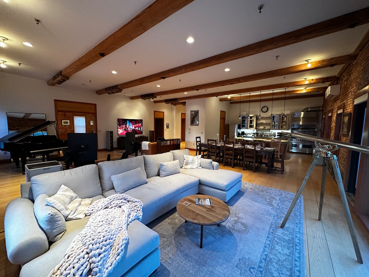 Immerse in tranquility at our serene mill retreat in Southern NH. This historic space, adorned with original timber, rustic brickwork, and lofty 11 ft ceilings, offers a spacious 2,650 sq ft sanctuary. Relax in the soaking tub, or savor the calming waterfall views from the deck. Conveniently near downtown, but distant enough for undisturbed peace. Welcome to your soothing retreat for rest and rejuvenation. A remote worker's dream office with high speed connectivity and dedicated remote workspace