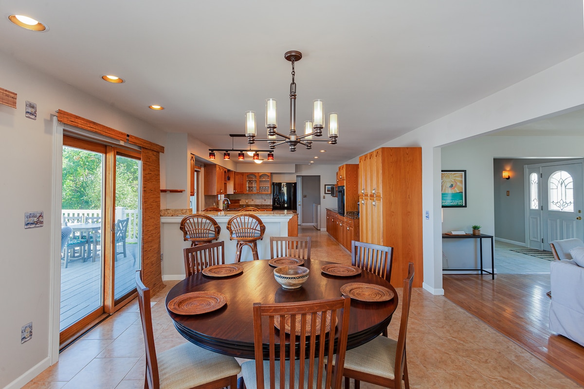 - इलेक्ट्रिक बिल्ट - इन फ़ायरप्लेस और स्मार्ट टीवी के साथ सनलाइट फ़ैमिली रूम - 6 के लिए डाइनिंग, स्मार्ट टीवी, इलेक्ट्रिक फ़ायरप्लेस और मोड के लिए मल्टी - लाइटिंग विकल्प - पूरी तरह से सुसज्जित किचन, कॉफ़ी बार, घुटने का बार - स्लीपर सोफ़ा, प्राइवेट बाथ, किताबें, गेम, लॉन्ड्री के साथ दूसरा फ़ैमिली रूम - छत के पंखों वाले 2 ऊपर के बेडरूम, स्मार्ट टीवी - टब और शॉवर के साथ सामान्य पूर्ण बाथरूम - 2 के लिए निजी पार्किंग - सामने के बरामदे में क्लासिक सीटिंग - रेस्टोरेंट के ढेर सारे विकल्पों के लिए सेंट्रल हम आपकी मेज़बानी करने के लिए उत्साहित हैं। अभी बुक करें या मुझसे कुछ भी पूछें