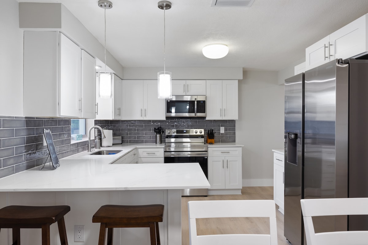 These luxury townhomes were thoughtfully built as vacation havens in the heart of Downtown Dunedin, a place we proudly call home. Designed with privacy in mind, each home features professionally built lockout units between floors and neighboring townhomes, allowing guests to book individual spaces or entire homes - while always maintaining complete privacy and comfort.