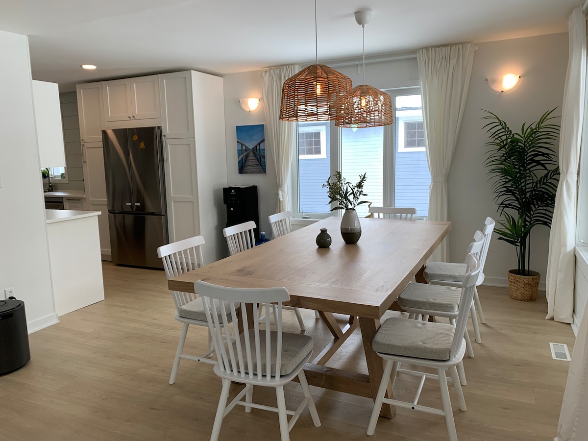 समुद्र तट के पास हमारे आधुनिक कॉटेज में पूरे परिवार के साथ मज़े करें। समुद्र तट से पैदल दूरी पर, हमारे कुत्ते के अनुकूल जगह हर किसी के लिए आराम का दावा करती है। यह आधुनिक कॉटेज एक बड़े परिवार या दो परिवारों के लिए साझा करने के लिए डिज़ाइन किया गया था। 3 बेडरूम, 2 स्नान जिसमें बच्चों के लिए एक चारपाई का कमरा और केनेल और एक कुत्ते के स्नान के साथ एक मडरूम शामिल है। पिछवाड़े में दो बीबीक्यू, बैठने और खाने की जगहों के साथ - साथ बहुत सारे बैठने के साथ एक अग्नि गड्ढे क्षेत्र के साथ एक बड़ा जमीनी स्तर का डेक है।