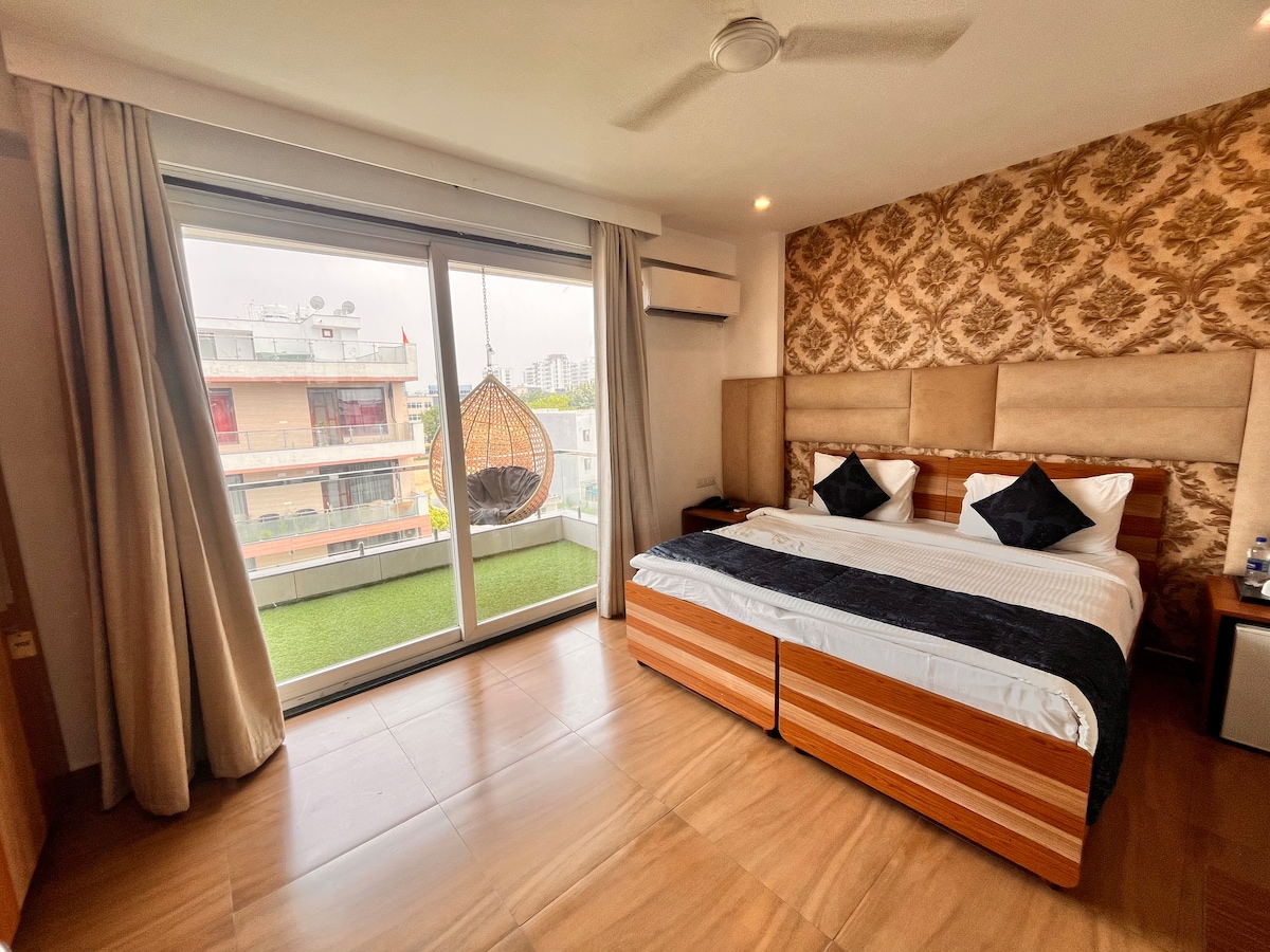 IGI हवाई अड्डे से 15 मिनट के भीतर बालकनी के साथ सनलाइट रूम