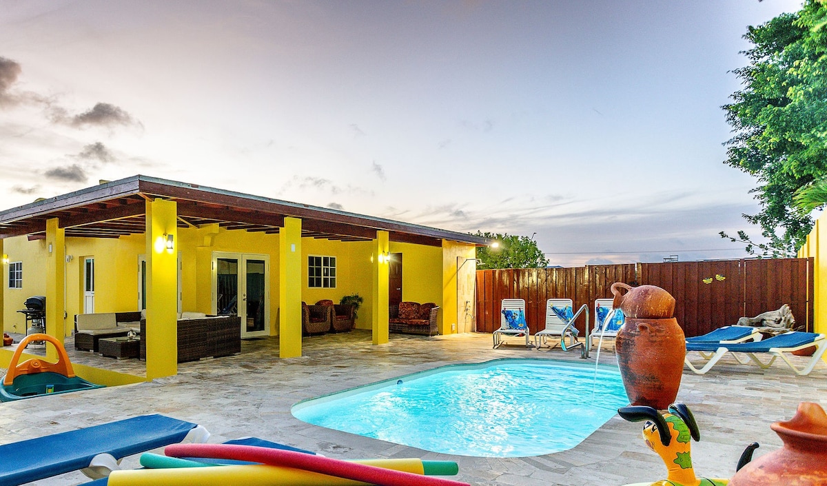 यह दूर जाने और सफेद रेत के समुद्र तटों, सुंदर हवा और अरूबा के गर्म सूरज का आनंद लेने के लिए एकदम सही जगह है। चाहे आपको कपल्स के बाहर जाने, परिवार के साथ छुट्टियाँ मनाने या दोस्तों के साथ जश्न मनाने की आवश्यकता हो, आप इस स्वच्छ, ताज़ा, नए बनाए गए परिसर से निराश नहीं होंगे। नवनिर्मित पूल संपत्ति के केंद्र में स्थित है। पूल द्वारा आराम करने के लिए पूल स्प्लैश पैड लाउंजर्स और लॉन कुर्सियों में सुसज्जित। प्रत्येक अपार्टमेंट में पोर्टेबल समुद्र तट कुर्सियां, समुद्र तट तौलिए और एक कूलर है।