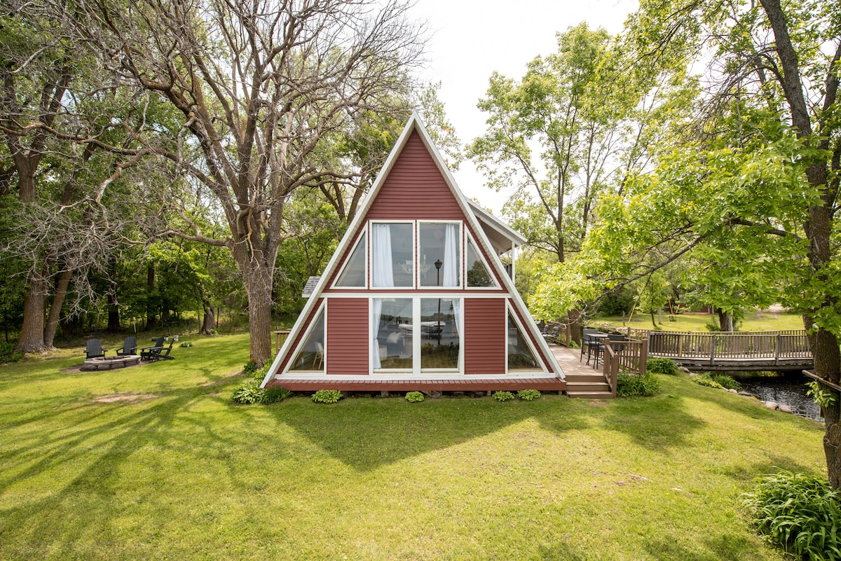 सॉना + इंडोर फ़ायरप्लेस के साथ आरामदायक A - फ़्रेम