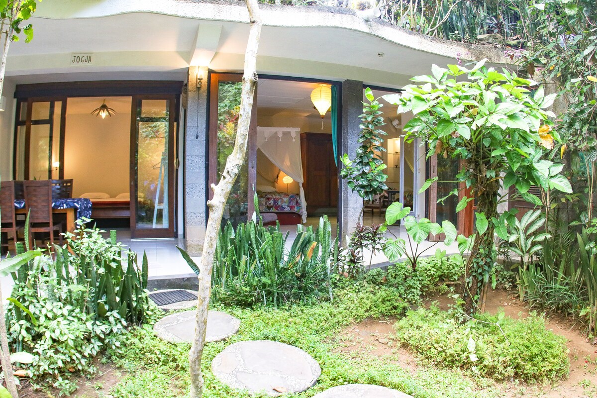 Rumah Jogja एक निजी दो बेडरूम का अपार्टमेंट है जो जंगल और नदी को देखता है, जिसमें बाथरूम, पूरी तरह से सुसज्जित रसोई और आउटडोर बैठने/भोजन क्षेत्र का क्षेत्र है। नदी और चावल के खेतों के बीच बसा, Rumah Semanggi छोटे और लंबे समय तक ठहरने के लिए बुटीक बंगलों का एक छोटा सा गाँव है। एक गहरे प्राकृतिक पत्थर के स्विमिंग पूल के साथ एक आलीशान उष्णकटिबंधीय उद्यान में सेट करें, Rumah Semanggi बाली की खोज करने वाले यात्रियों के लिए एक सुकूनदेह आश्रय है।