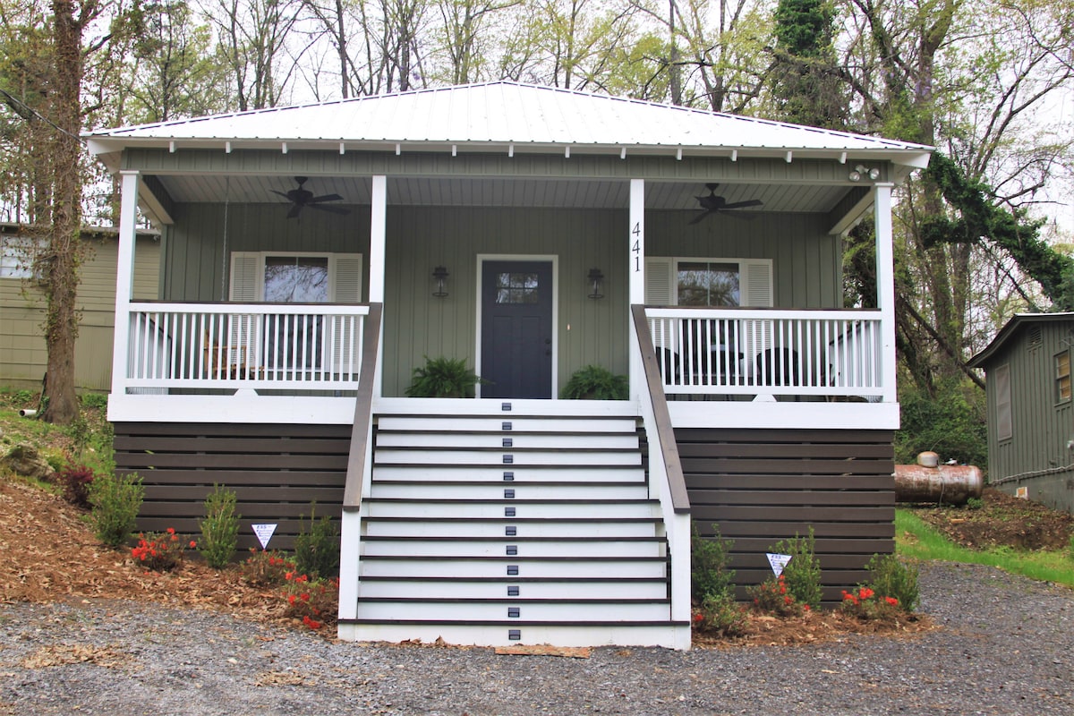 अलाबामा की सबसे अच्छी झील के किनारे बना वॉटरफ़्रंट होम। 4 BR: 1 नीचे, 3 ऊपर; झील के नज़ारे के साथ 1 BR। विंटेज टब के साथ 1 बाथ अप, वॉक - इन शॉवर के साथ 1 बाथ डाउन। सभी सुविधाओं से लैस किचन : कुकटॉप, ओवन, बड़ा फ़्रिज, आइसमेकर। बड़ी डेन फ़ायरप्लेस (फ़ायरवुड दिया जाएगा)। रैप - अराउंड पोर्च; पोर्च स्विंग, बड़े डेक, सभी झील की ओर हैं। धूप और बोटिंग के लिए डॉक करें। सैंडी स्विमिंग एरिया। घर से झील और सूर्यास्त के शानदार नज़ारे। लेक मार्टिन एम्फ़ीथिएटर, हॉर्सशू बेंड नेशनल पार्क, ऑबर्न यूनिवर्सिटी के करीब।