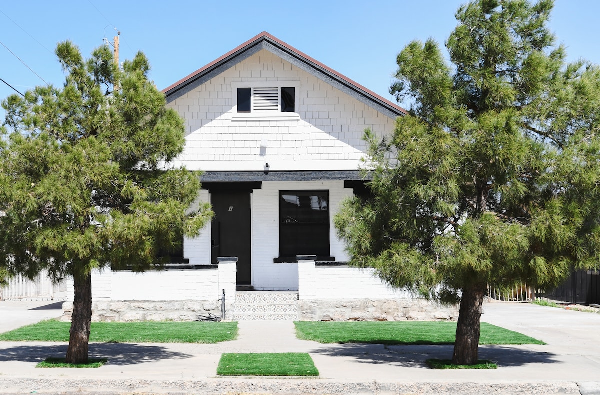 पांच अंक में घर में आपका स्वागत है! मध्य एल पासो में एक उज्ज्वल, आधुनिक और कला से भरा घर। आराम करें और पहाड़ के दृश्य के साथ पोर्च पर एक कप कॉफी का आनंद लें, या विशाल पिछवाड़े में परिवार के साथ लटकने का आनंद लें। शहर के कुछ बेहतरीन रेस्तरां और सलाखों के एक मील के भीतर स्थित है, और शहर, UTEP, फोर्ट ब्लिस और अस्पतालों से कुछ मिनट की दूरी पर है। घर में रेफ्रिजेरेटेड एयर, पूरी तरह से सुसज्जित किचन और लॉन्ड्री रूम शामिल हैं। साप्ताहिक और मासिक बुकिंग पर छूट। इंस्टा: @thehouseinfivepoints