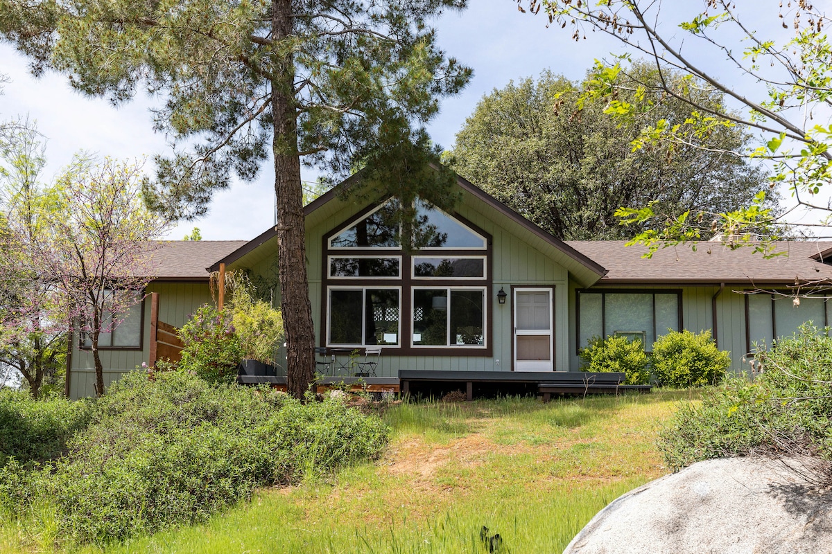 यह कॉटेज एक पहाड़ी पर एक पहाड़ी पर बैठता है जिसमें आश्चर्यजनक सूर्यास्त और अद्भुत दृश्य हर खिड़की से बाहर एक शांत 4 एकड़ जमीन पर गोपनीयता है। बाहर बैठे क्षेत्रों में से एक का आनंद लें या इस गर्म और आमंत्रित घर के अंदर आग से आरामदायक। यह कॉटेज जोड़ों, एकल छुट्टियों या छोटे परिवार के लिए एकदम सही है। 5 मिनट ओखर्स्ट के लिए, बास झील के लिए 7 मिनट, योसेमाइट के दक्षिणी प्रवेश द्वार के लिए 25 मिनट, और घाटी के फर्श के लिए 1 घंटे और 15 मिनट। सूर्यास्त के लिए समय पर वापस आएं!