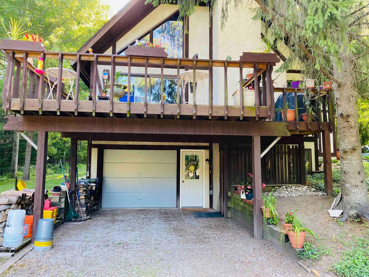 ढलानों या मिशिगन झील से बस कुछ मिनट की दूरी पर, सीढ़ियों के नीचे अपने निजी सुइट का आनंद लें। हमारा घर Nubs Knob और The Highlands के बीच एक निजी सबडिवीज़न में स्थित है। अपने निजी भँवर और सॉना में स्कीइंग या लंबी पैदल यात्रा के लंबे दिन के बाद आराम करें। यह जगह हमारे घर की सीढ़ियों से नीचे है, जिसमें एक निजी प्रवेशद्वार और गैराज है और इसे घर के बाकी हिस्सों के साथ साझा नहीं किया जाता है।