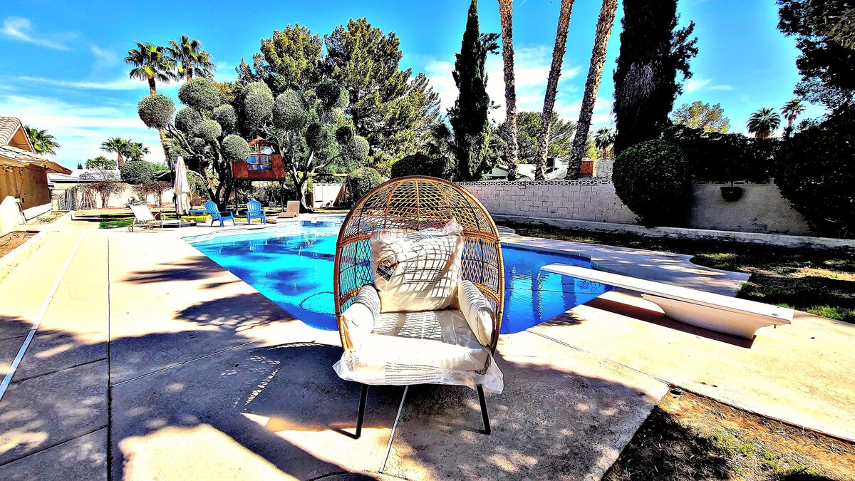 Lux Pool Oasis min to Airport/strip W/ games+king
