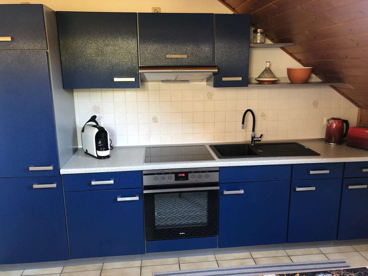 हम एक आरामदायक माहौल में 3.5 कमरे का अपार्टमेंट प्रदान करते हैं, जो छुट्टी या व्यावसायिक अपार्टमेंट (होम ऑफिस) के रूप में उपयुक्त है। लिविंग रूम तक सीधी पहुँच, एक बाथरूम और 2 मंजिलों में लगभग 100 वर्ग मीटर पर 3 बेडरूम के साथ एक बड़ी रसोई, 5 मेहमानों के लिए बहुत सारी जगह। 1 छोटे बच्चे को भी समायोजित किया जा सकता है। एक दक्षिण मुखी बालकनी मामले को पूरा करती है। एक आधुनिक अच्छी तरह से सुसज्जित रसोईघर स्व - खानपान के लिए कार्य करता है। दरवाज़े के सामने पार्किंग।