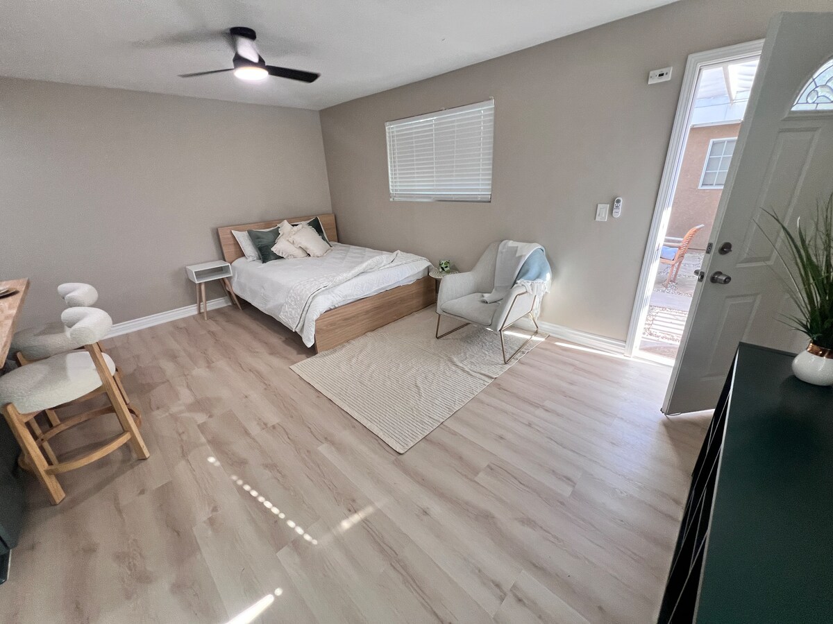 यह घर पहाड़ों के नज़ारों के साथ एक शांतिपूर्ण पड़ोस में स्थित है, जो I -15, एस्कॉन्डिडो मॉल और फ़ेलिसिटा पार्क के करीब है। गेस्टहाउस मुख्य घर से जुड़ा हुआ है, लेकिन इसमें एक निजी प्रवेश द्वार है जिसमें एक निजी ड्राइववे और आपका अपना ऑटो गेट है। इसमें एक आउटडोर निजी स्पा, 1 बंद और 1 ओपन फ़्लोर प्लान बेडरूम, आँगन, किचन, 1 बाथरूम वाली वॉक - इन अलमारी है। सुविधाओं में तेज़ वाईफ़ाई, 75”4KTV, कुकटॉप, ओवन, माइक्रोवेव, रेफ़्रिजरेटर आदि शामिल हैं। 15 मिनट SD Safari और समुद्री दुनिया या LEGOLAND के लिए 30 मिनट