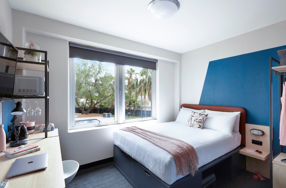 рдпрд╣ рдПрдХ рд╕реНрдЯреВрдбрд┐рдпреЛ рдФрд░ рдПрдХ рдмреЗрдбрд░реВрдо рдЕрдкрд╛рд░реНрдЯрдореЗрдВрдЯ рдХреЛ рдЬреЛрдбрд╝рддреА рд╣реИ, рдкреНрд░рддреНрдпреЗрдХ рдЕрдкрдиреА рдкреНрд░рд╡рд┐рд╖реНрдЯрд┐ рдХреЗ рд╕рд╛рде рдФрд░ рдПрдХ рдЖрдВрддрд░рд┐рдХ рджрд░рд╡рд╛рдЬреЗ рд╕реЗ рдЬреБрдбрд╝рд╛ рд╣реБрдЖ рд╣реИред рд╡рд┐рд╢рд╛рд▓ рдЕрдкрд╛рд░реНрдЯрдореЗрдВрдЯ рдореЗрдВ рдЕрдиреБрд░реЛрдз рдкрд░ рджреЛ рдХрд┐рдВрдЧ рдмреЗрдб рдпрд╛ рдЪрд╛рд░ рд╕рд┐рдВрдЧрд▓ рдмреЗрдб, рджреЛ рдмрд╛рдерд░реВрдо, рдкреВрд░реНрдг рд░рд╕реЛрдИрдШрд░, рд░рд╣рдиреЗ рдФрд░ рднреЛрдЬрди рдХреНрд╖реЗрддреНрд░, рдХрд╛рд░реНрдп рдбреЗрд╕реНрдХ, рдмрд╛рд▓рдХрдиреА, рдХрдкрдбрд╝реЗ рдзреЛрдиреЗ рдХреА рд╕реБрд╡рд┐рдзрд╛ рдФрд░ рд╕реНрдорд╛рд░реНрдЯ рдЯреАрд╡реА рд╣реИрдВред рд╡реНрдпрдХреНрддрд┐рдЧрдд рд░реВрдк рд╕реЗ рдирд┐рдпрдВрддреНрд░рд┐рдд рд╣реАрдЯрд┐рдВрдЧ рдФрд░ рдХреВрд▓рд┐рдВрдЧ, рдореБрдлреНрдд рд╡рд╛рдИрдлрд╛рдИ рдФрд░ рдХрд╛рдо рдХрд░рдиреЗ рдФрд░ рднреЛрдЬрди рдХрд░рдиреЗ рдХреЗ рд▓рд┐рдП рдмрд╣реБрдд рд╕рд╛рд░реА рдЬрдЧрд╣ рднреА рд╣реИред