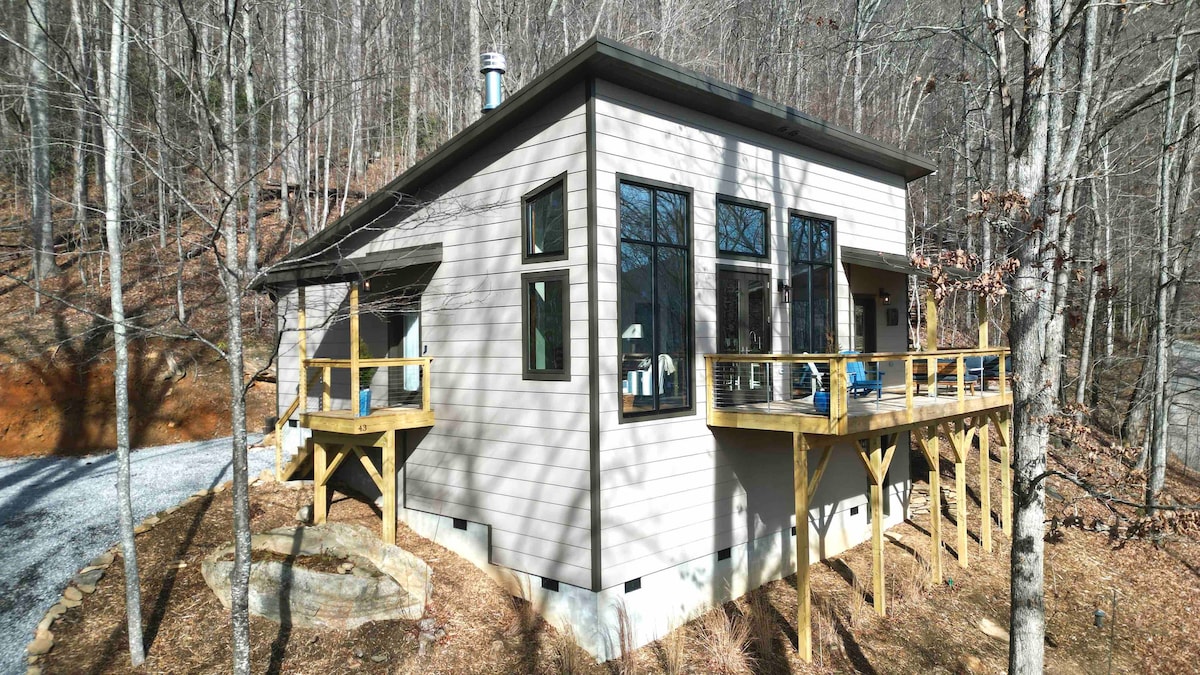 एशविल के करीब हॉट टब वाला शानदार आधुनिक केबिन
