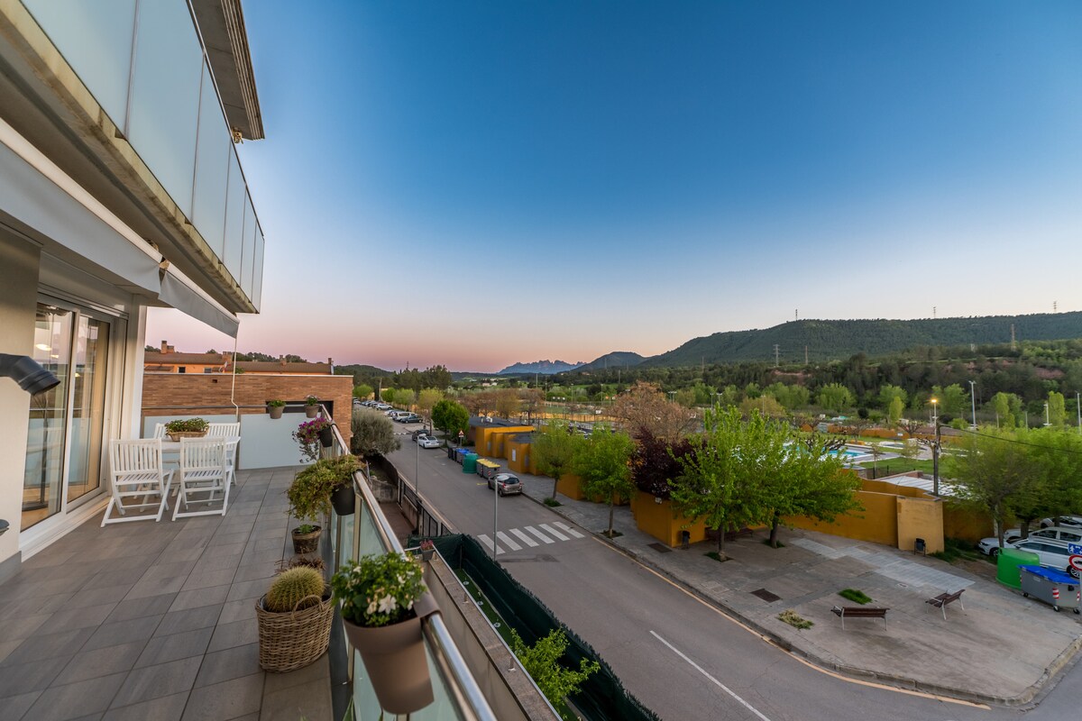 मोंटसेराट पर्वत के शानदार दृश्यों के साथ 13m2 छत के साथ अधिकतम 4 लोगों के लिए अपार्टमेंट। एक विशेषाधिकार प्राप्त जगह में, मोंटसेराट पर्वत के तल पर। मोंटसेराट मठ, लंबी पैदल यात्रा, साइकिलिंग के मार्गों या प्राकृतिक पार्क के माध्यम से चढ़ने के लिए आदर्श। Monistrol de Montserrat के खूबसूरत शहर में। रेस्टोरेंट, दुकानों और बेकरी के करीब। बार्सिलोना से 50 किमी दूर, कैटेलोनिया के केंद्र में। आदर्श रूप से कैटेलोनिया में सबसे महत्वपूर्ण आकर्षणों की यात्रा करने के लिए एक आधार के रूप में स्थित है।