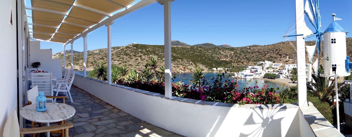 चमकदार एजियन सागर और पारोस, इओस, सिकिनोस और फोलेगांद्रोस द्वीपों के 180 डिग्री दृश्य के साथ शांत निजी निवास। सिफ़नो में समुद्र का एक अनोखा नज़ारा। घर में पूरी तरह से सुसज्जित रसोई, भोजन कक्ष, दो बेडरूम और दो बाथरूम के साथ-साथ भोजन क्षेत्र के साथ आपका अपना बरामदा है जहाँ से आप लुभावने दृश्यों का आनंद ले सकते हैं। आपके पास समुद्र तक जाने वाले एक निजी रास्ते तक पहुंच है ताकि आप पूरी गोपनीयता में चट्टानों से तैरने का आनंद ले सकें। मुफ़्त वाई-फ़ाई और पार्किंग।