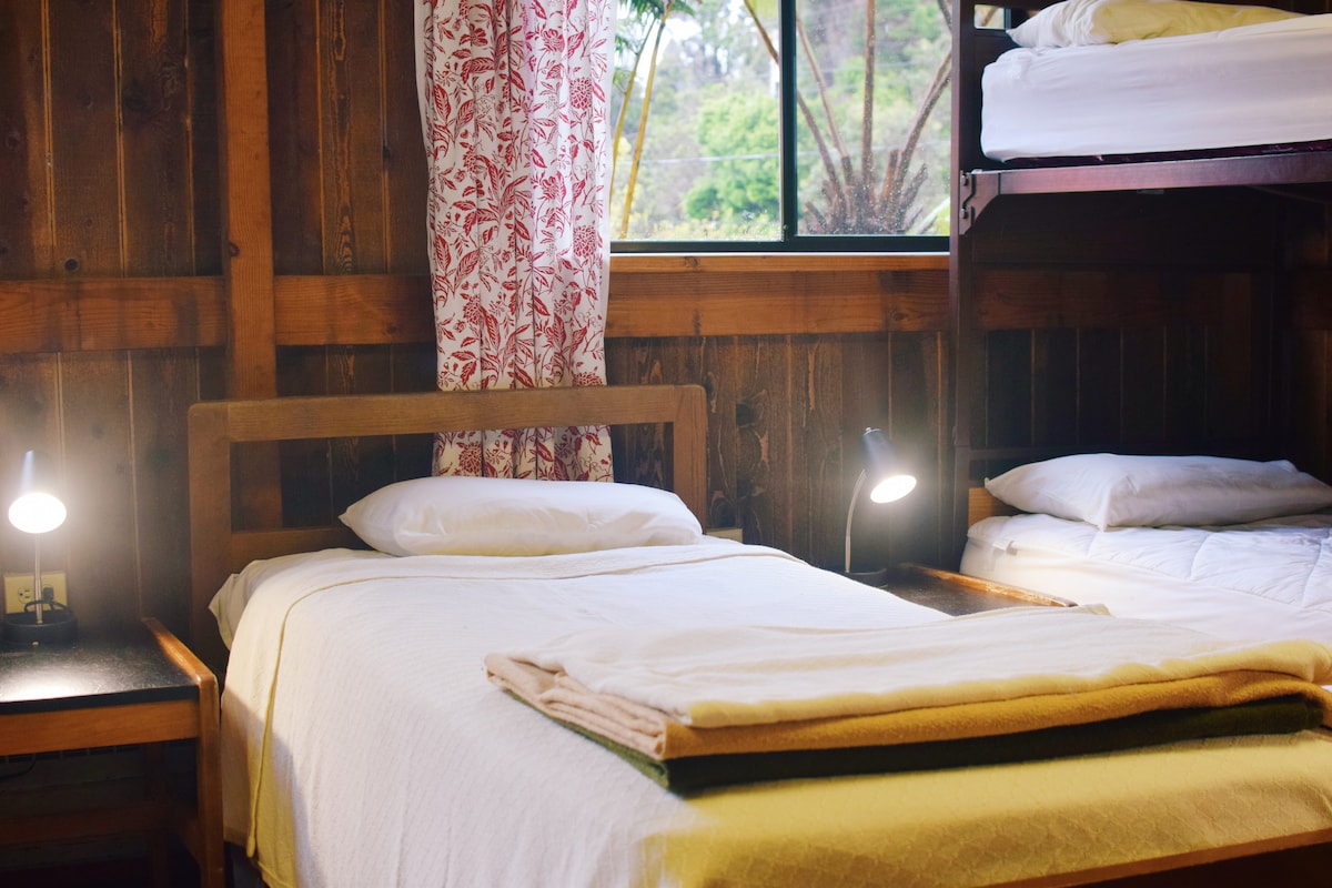 पुरानी शैली का अनोखा हवाई डिज़ाइन; पूर्वी हवाई द्वीप वर्षावन में अपने निजी ट्रॉपिकल कॉटेज का अनुभव करें। इको हेल प्रकृति प्रेमियों, रोमांटिक और दयालु लोगों को आकर्षित करता है। हिलो से 30 मिनट और हवाई ज्वालामुखी नटल पार्क से 25 मिनट की दूरी पर 1 एकड़, गेट और सुरक्षित। हॉट टब और सुविधाएँ वाईफ़ाई के साथ ग्रिड सोलर से दूर हैं। 4W की ज़रूरत नहीं है, लेकिन उन्हें गाड़ी चलाने में मज़ा आता है। कोई सफ़ाई शुल्क नहीं। चेक इन 3pm -6pm कई, कई चमकदार (जैसे पेले) समीक्षाएँ
