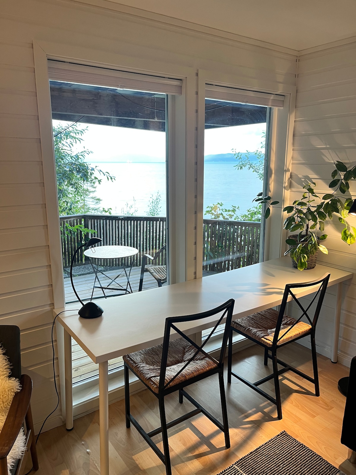 Escape to our modern, 130m2 holiday home with spectacular waterfront views of the Trondheimsfjord. Located at the end of a quiet road just 80 mins from Trondheim, this private retreat offers a peaceful getaway. The bright, airy space features 2+ bedrooms, a winter garden, and two large terraces, comfortably accommodating families or groups seeking tranquility and stunning scenery.
