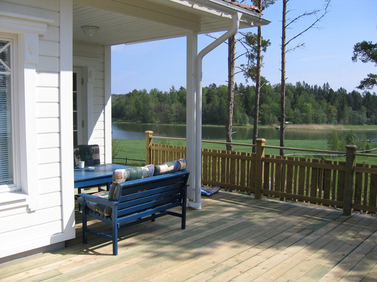 200 मीटर निजी समुद्र तट के साथ सुपर आरामदायक कॉटेज। 150 वर्गमीटर की बालकनी पर बैठें और 5000 वर्गमीटर से अधिक के घास के मैदान को देखें जो समुद्र तट से जुड़ता है और फिर नीचे दर्पण जैसे चमकदार समुद्र में मिल जाता है। यह कॉटेज पूरी तरह से सुसज्जित है और मुख्य कॉटेज में छह बिस्तर हैं, दो + एक बिस्तर अलग निजी सुइट में और पास के गेस्ट हाउस में दो और बिस्तर हैं। साइट पर एक लकड़ी से जलने वाला सौना है और एक अतिथि के रूप में आपके पास तीन छोटी नावों तक पहुंच है और किम्पल 460 किराए पर लेने का विकल्प है!