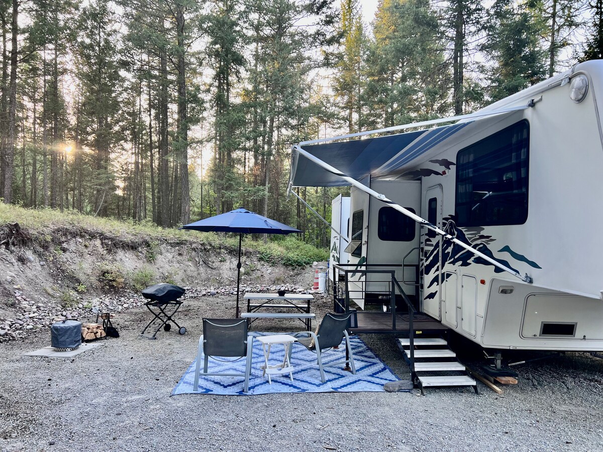 The camper is parked at our home just outside Columbia Falls, 30 min to Glacier National Park and 5 min to the airport. We have beautiful mountain views and a private 1.25 acres. You will have the camper to yourself with full use of the kitchen, bathroom in the camper and patio outside the camper. Our other rental on the property: https://www.airbnb.com/h/glacierhiddenretreat airbnb.com/h/woodlandmt