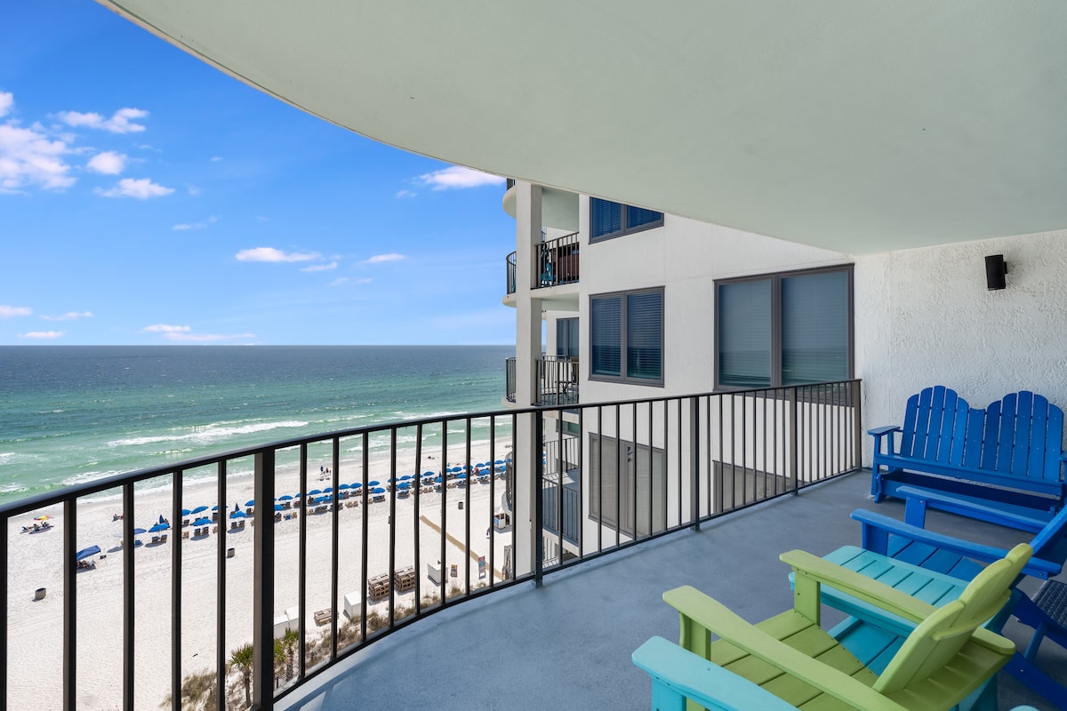 रिज़र्वेशन के साथ 2 मुफ़्त बीच चेयर/ 1 छाता शामिल है (15 मार्च - 31 अक्टूबर)। यह सुंदर पीसीबी में समुद्र तट पर सही स्थित है! इस इकाई में एक राजा बिस्तर, प्यार सीट सोफा और एक रिक्लाइनर है। इसमें एक पूरा किचन और एक निजी बालकनी है। यह गल्फ वर्ल्ड, पियर पार्क और कई रेस्तरां से पैदल दूरी के भीतर है। बाथरूम में एक सुंदर वॉक - इन शॉवर है। इस कमरे का अपना वॉशर/ड्रायर है। इसमें एक कैफ़े और प्रॉपर्टी पर एक गर्म पूल भी है!